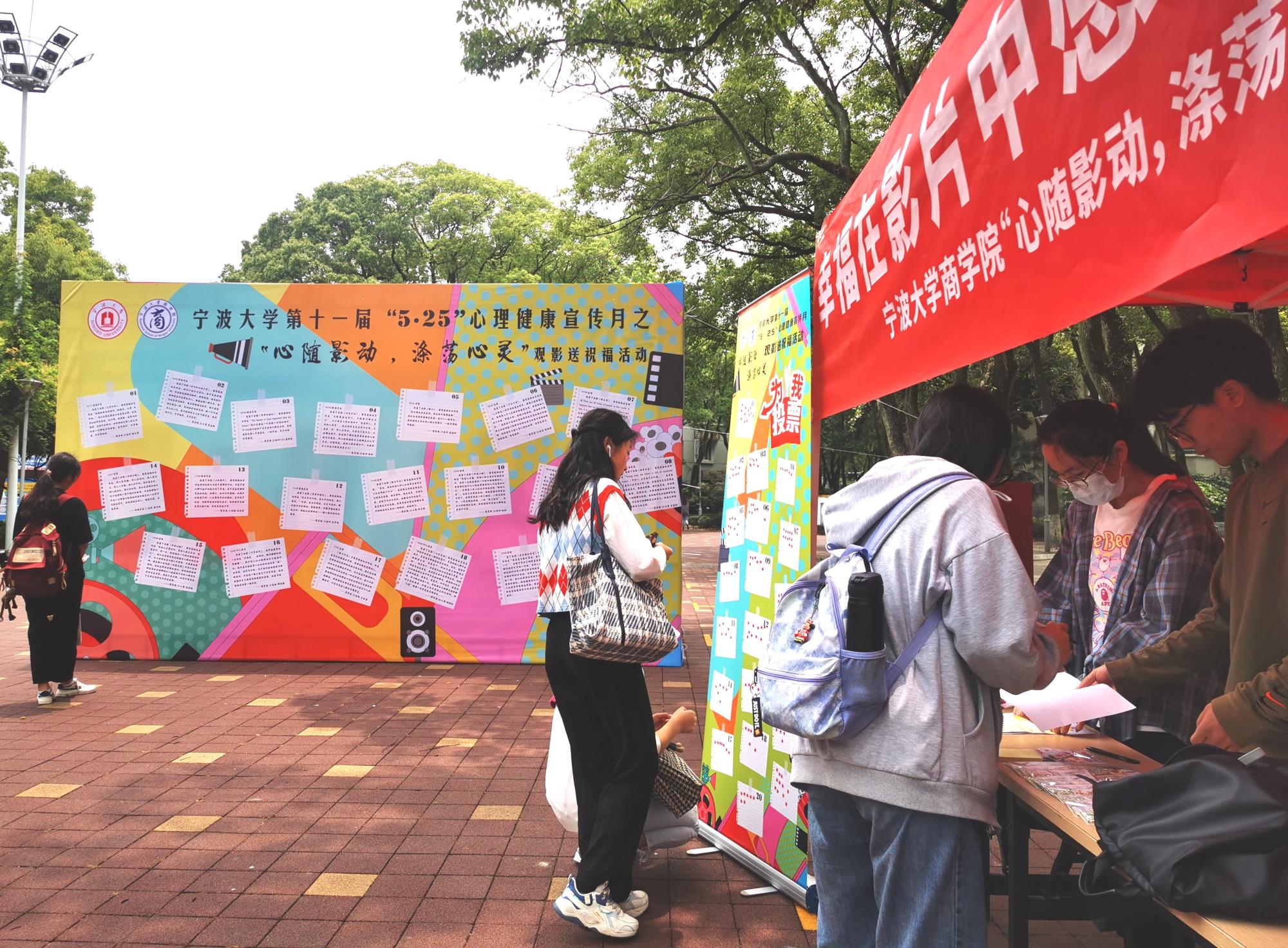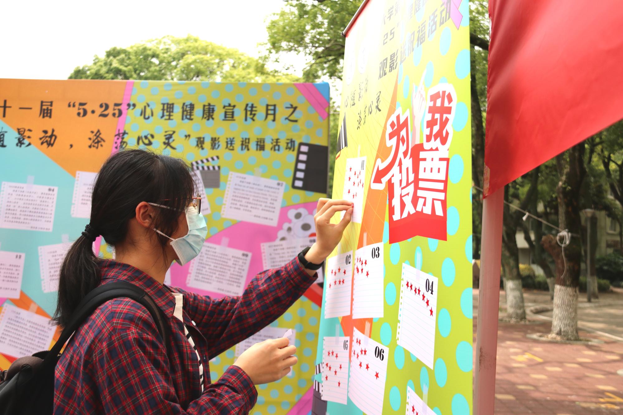 5月25日,为给学生办些实事,对学生进行心理健康教育。色情av影片 在有思广场顺利开展“心随影动,涤荡心灵”大学生心理健康观影祝福语线下投票活动,吸引了近百名同学现场参加。
