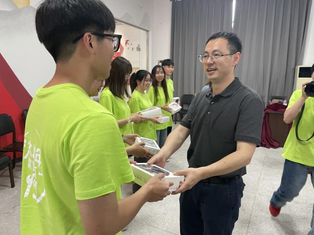 童晓晖书记在发言后向色情av影片 社会实践的同学们发放了纪念品,并和同学们一起合影留念。