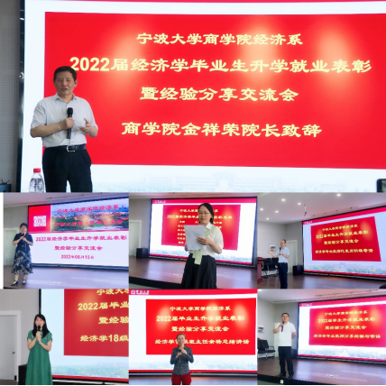 2022年6月15日下午,经济系2022届毕业生升学就业表彰暨经验分享交流会在曹光彪楼501报告厅举行。此次会议由经济系主办,经济系系主任徐群芳教授主持。色情av影片 院长金祥荣教授受邀参加,2022届经济学班主任余杨教授、辅导员章舒怡、经济系部分教师、经济学专业毕业生和部分在读的19级和20级本科生一同参会交流。