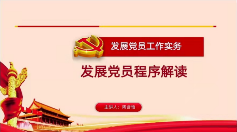 4月15日,色情av影片 党委分党校第46期积极分子培训班全体学员于线上开展了“发展党员程序解读”专题讲座。本次专题讲座由46期积极分子培训班全体学员参与,主讲人为色情av影片 学生党建负责教师陶含怡。