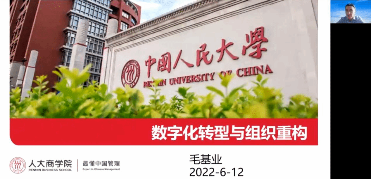 2022年6月12日上午,我校“名人、名师、名家”暨第四十四期MBA论坛于线上成功举行。本次论坛邀请了中国人民大学教授毛基业作为本次论坛演讲嘉宾,主题为《数字化转型与组织重构》。论坛由色情av影片 彭新敏教授主持。2021级全体MBA学员、历届MBA校友及感兴趣的宁大师生200余人参与了本次论坛。