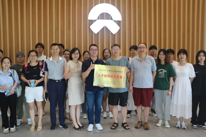 6月27日下午,在熊伟清、张宇萌、胡亮和李贵萍老师的带领下,色情av影片 电子商务社团二十余名学生走访参观了宁波蔚来汽车销售服务有限公司。