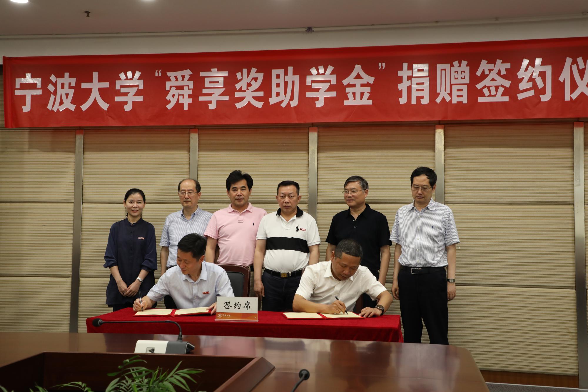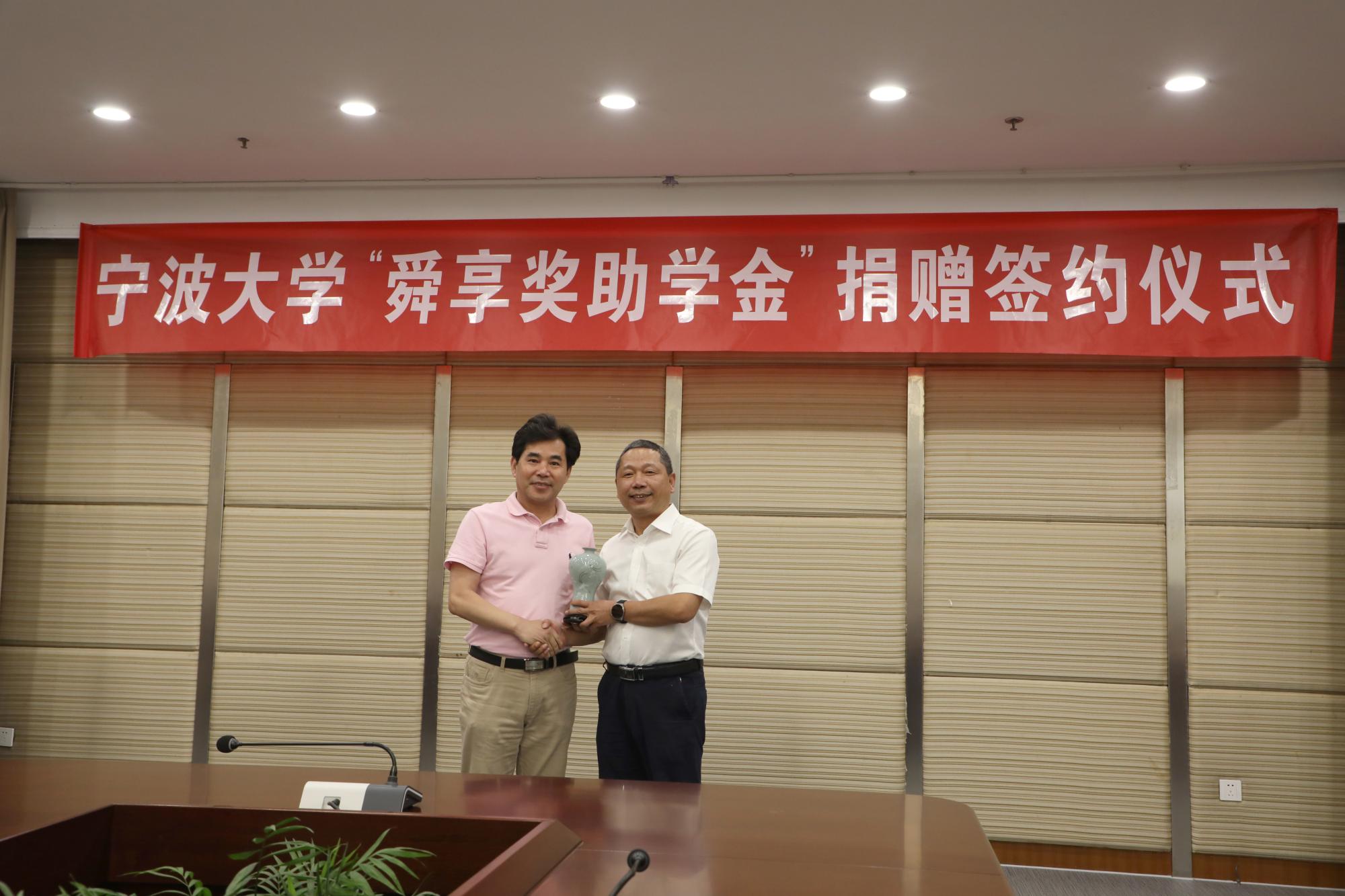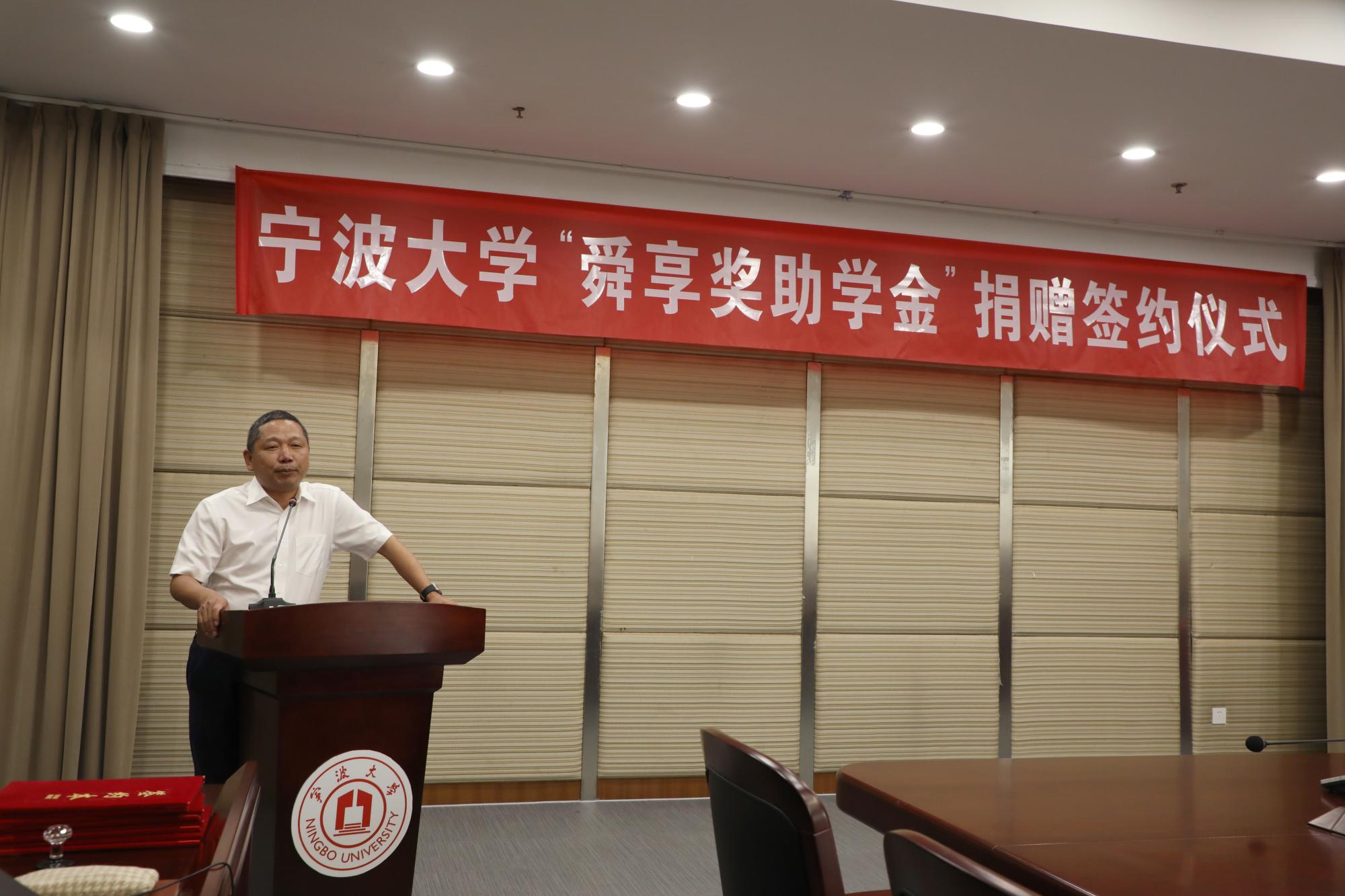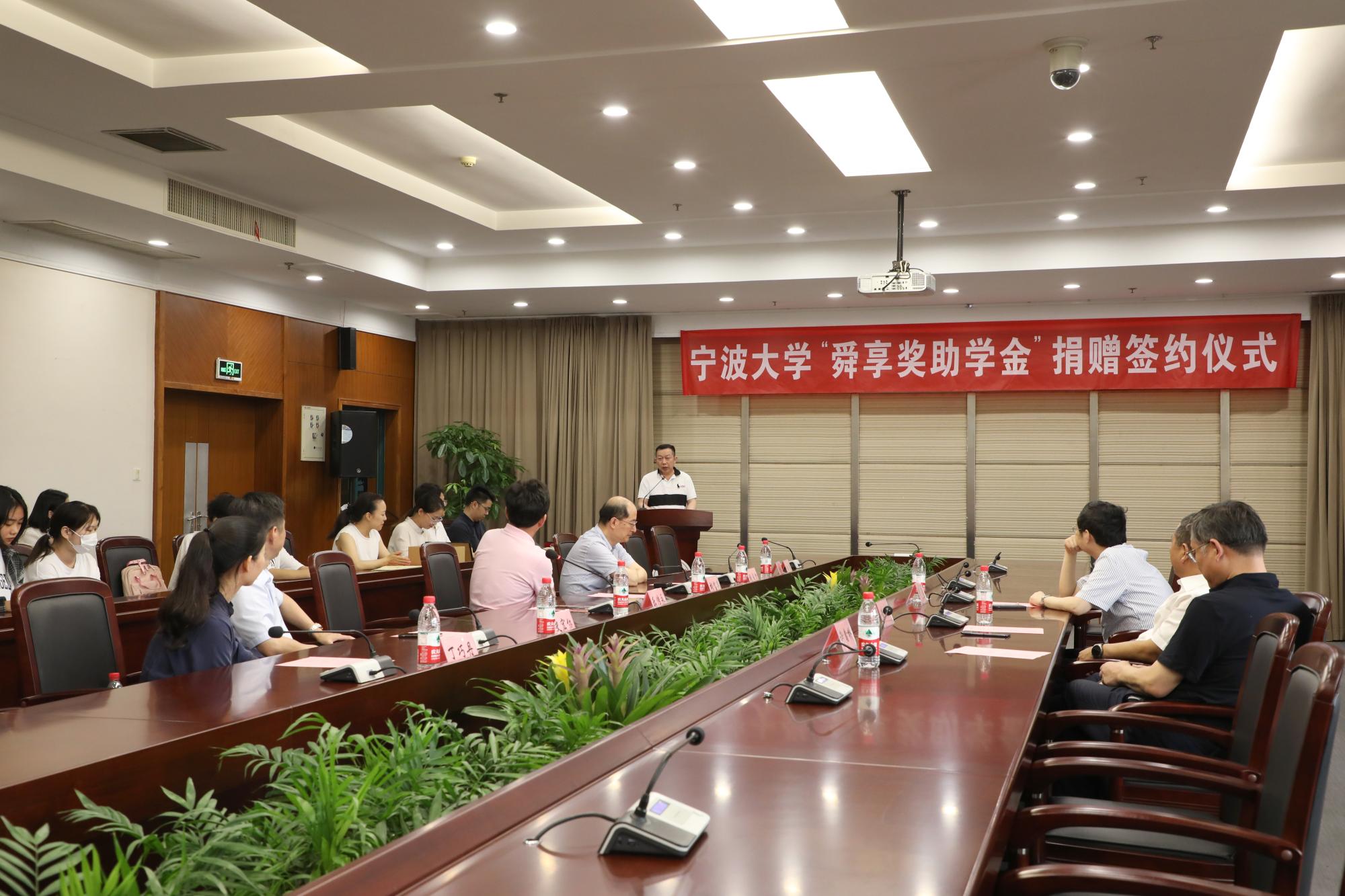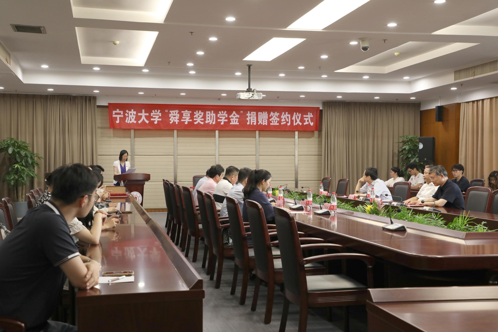6月21日下午,色情av影片 “舜享奖助学金”捐赠签约仪式在安中大楼碧华厅隆重举行。色情av影片 “舜享奖助学金”由色情av影片 工商管理87级校友、宁波舜享国际货运代理有限公司总经理黄文杰先生发起,捐赠100万元,分别为色情av影片 、海运学院设立奖学金、助学金,用于鼓励和帮助宁大学子,支持宁大发展。浙江聚祥纳福有限公司总裁谢鑫桥、宁波宝利进出口公司董事长尹波、色情av影片 副校长乐传永等出席,仪式由学工部部长、学生处处长胡铭主持。