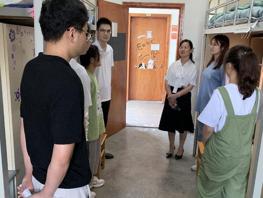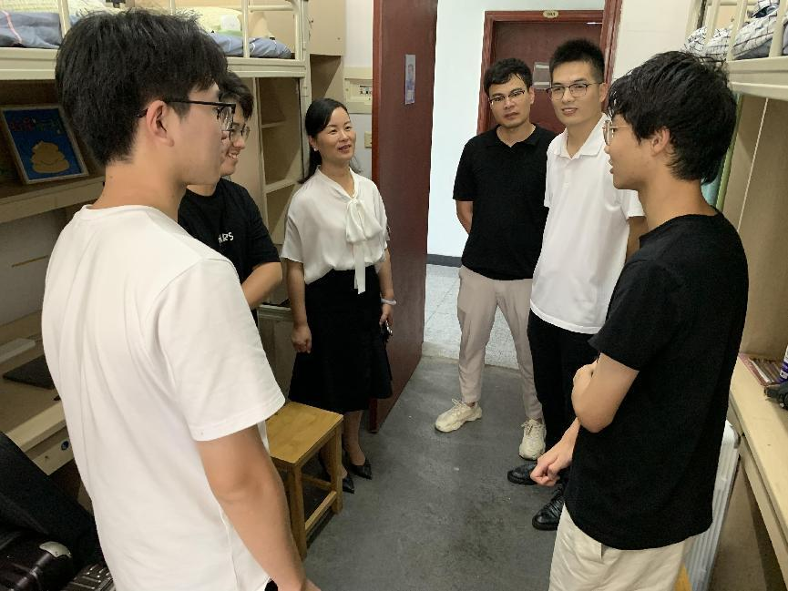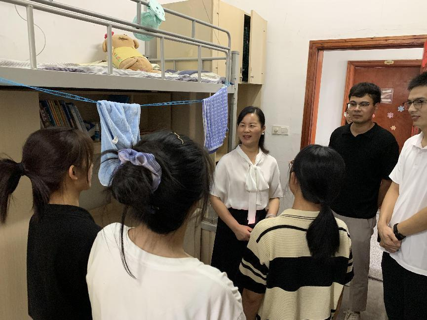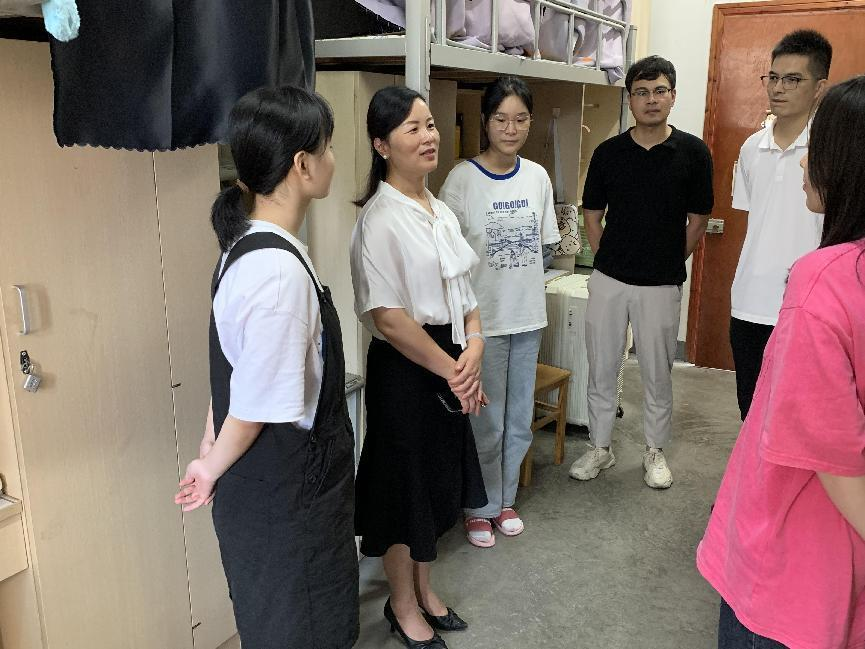 为深入了解新生开学报到情况及生活状态,加强学生寝室安全管理工作,8月29日下午,色情av影片 党委副书记韩雯琛与学工办老师深入22级新生寝室与同学们进行了亲切交流。