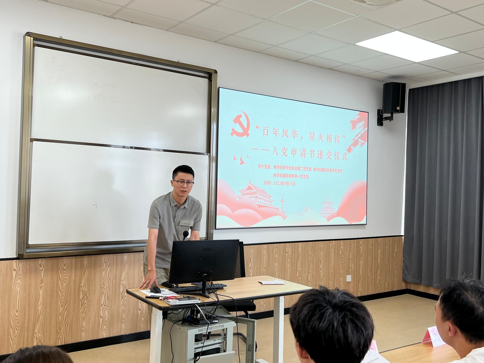 9月16日,色情av影片 于曹光彪楼506教室举办2022级研究生新生入党申请书递交仪式,学院2022级研究生新生参加,色情av影片 研究生辅导员陶含怡受邀出席。