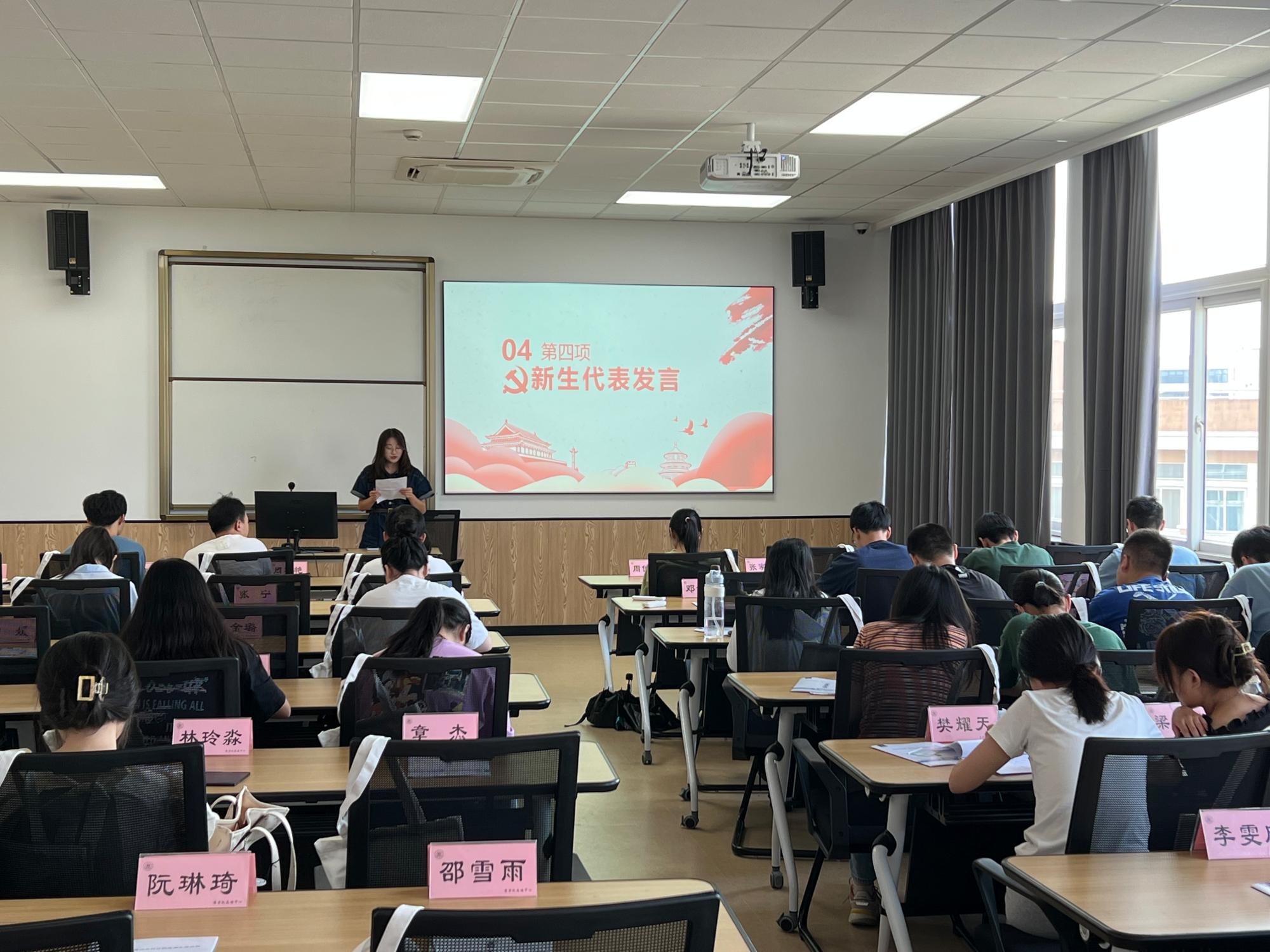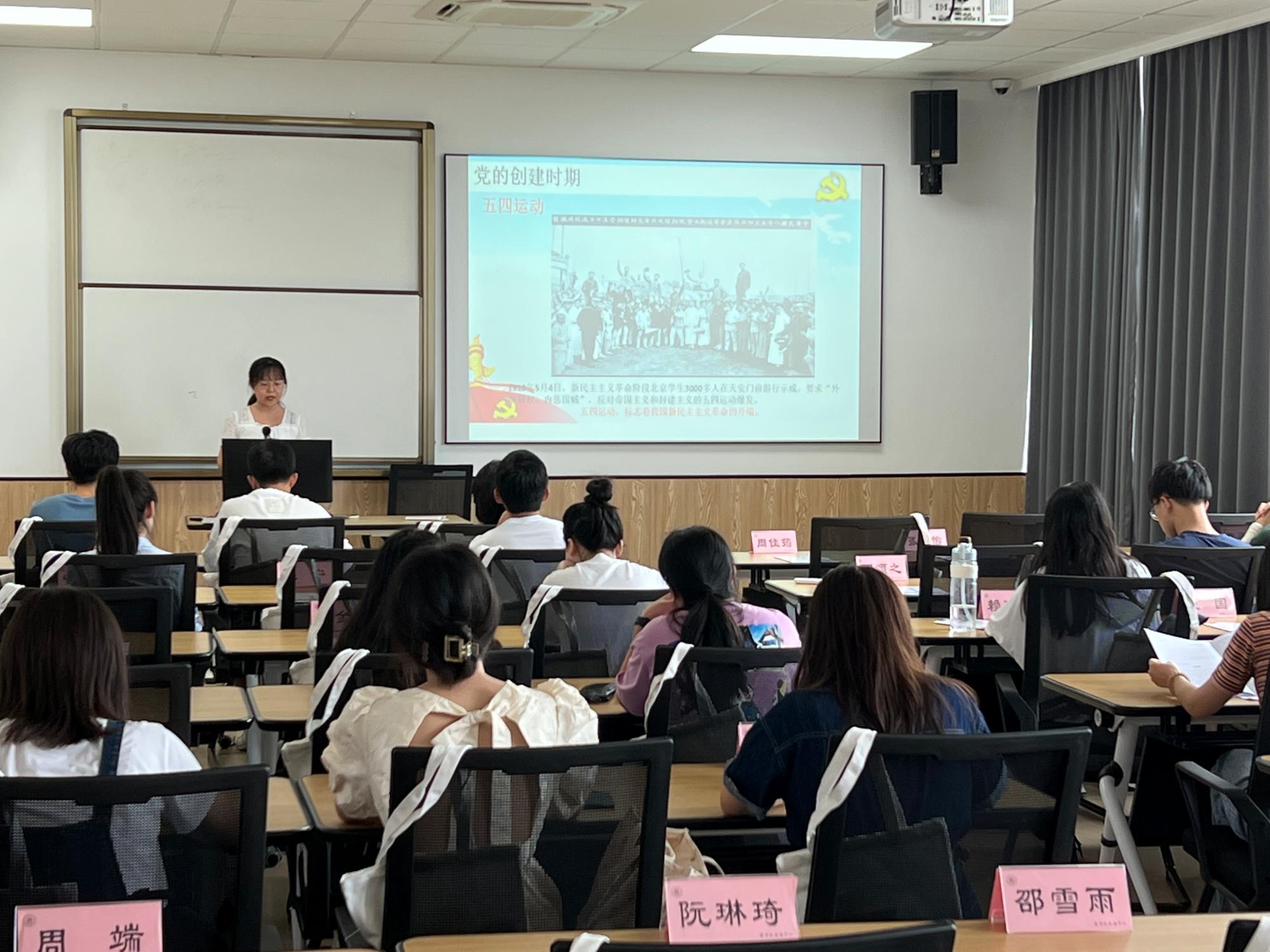 活动伊始,由研究生国际商务第一党支部成员陈可欣向新生介绍了中国共产党的奋斗历程及辉煌成果,使同学们了解中国共产党在中华民族伟大复兴历程上的初心和使命。