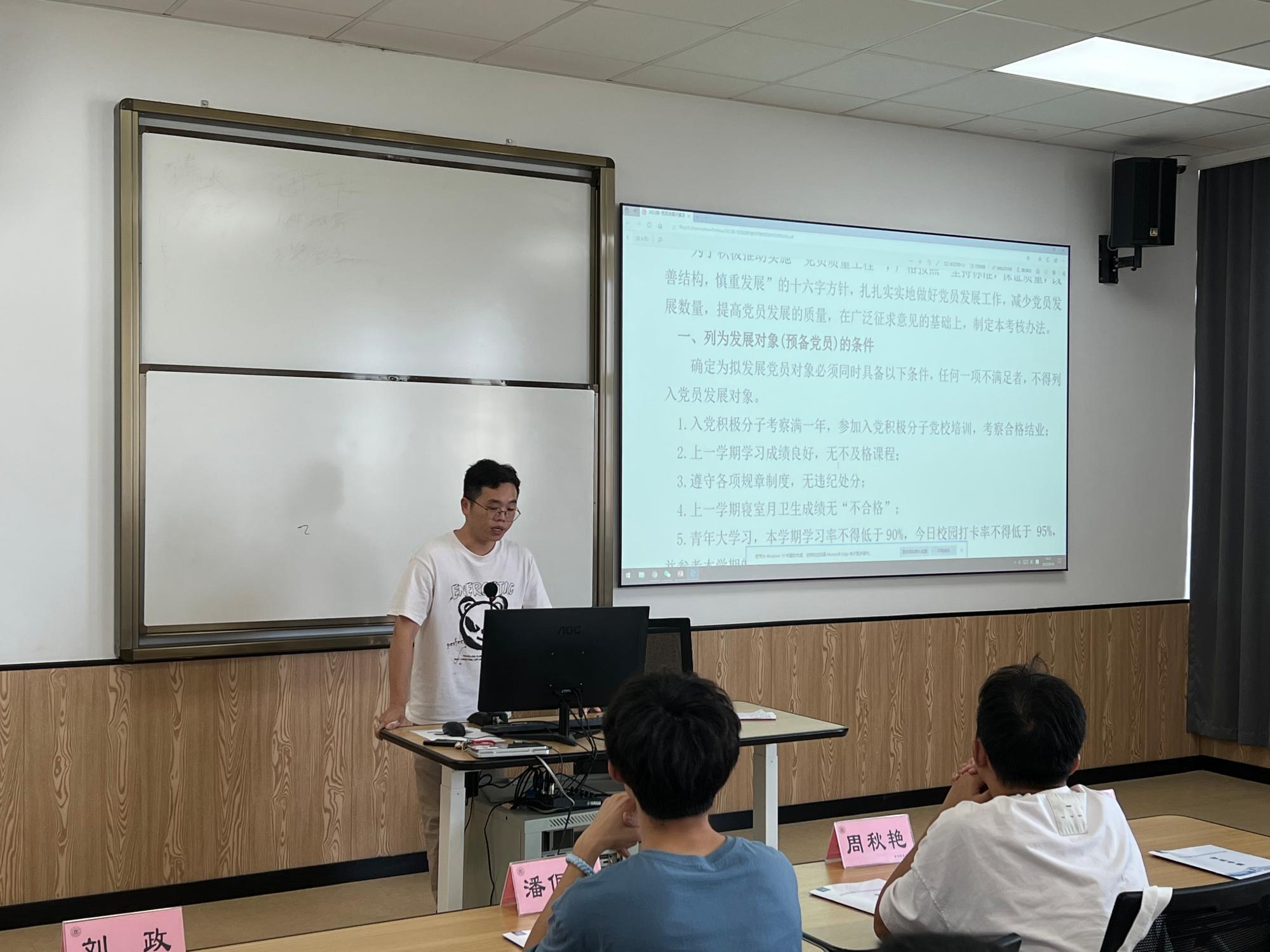 为让新生对学院入党程序更加清晰,提前做好入党规划,研究生联合第二党支部书记李钰、国际贸易学研究生党支部书记沈攀程详细介绍了色情av影片 发展党员工作流程,从列为发展对象条件、发展对象考察办法、预备党员考察办法、预备党员转正条件及转正所需材料五个方面解读了色情av影片 党员发展细则,建议新生积极参加校园活动,合理规划学习生活,为今后的入党评选夯实基础。