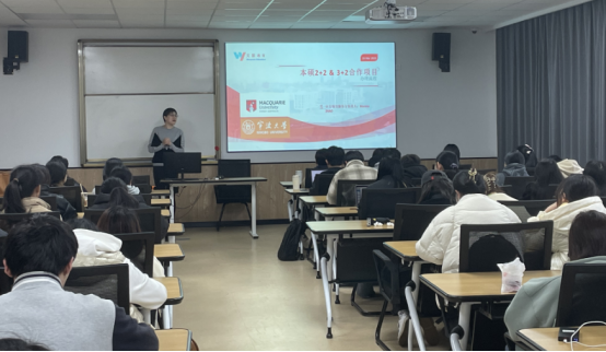 随后,MONICA女士和张钰慧老师还为色情av影片 全英文专业学生做了关于3+2本硕项目的介绍。