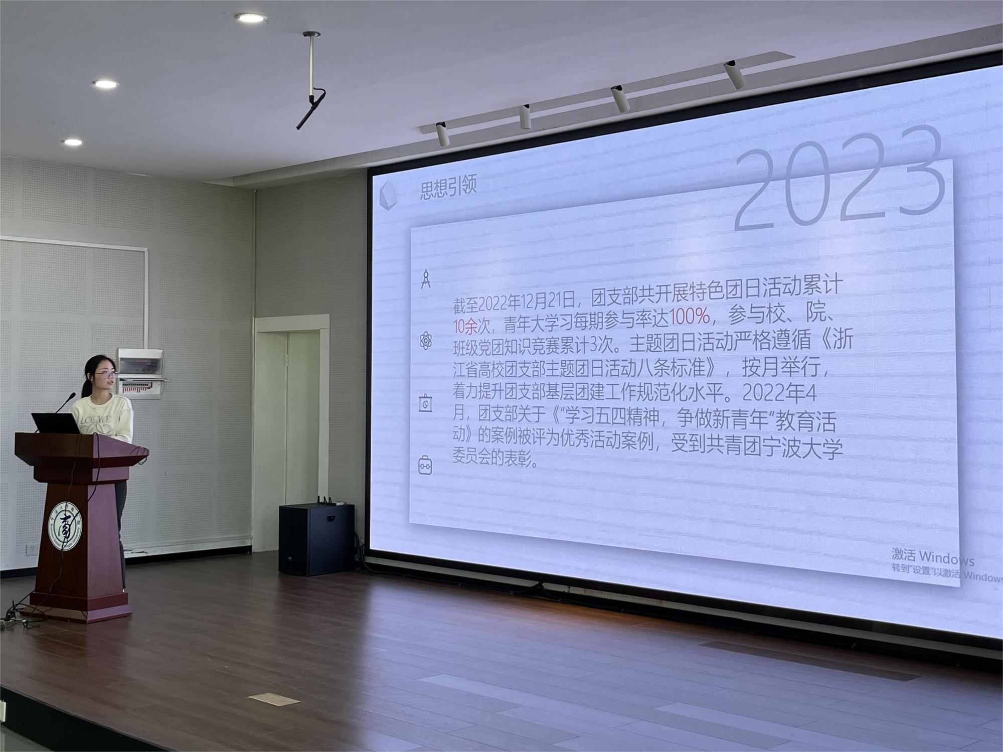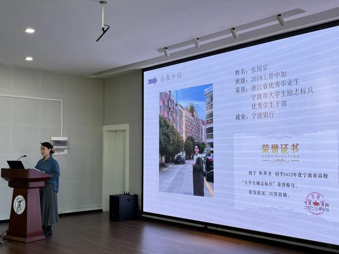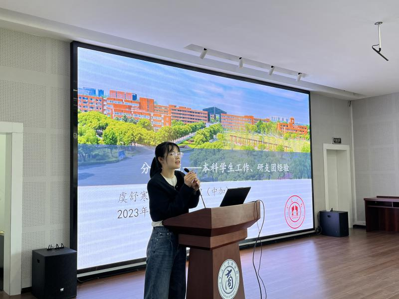 接着,19工管中加班团支书徐嘉雯分享了班级管理建设的经验。她分别从班级分工、学生工作、志愿服务、科创比赛、个人和集体荣誉、凝聚力建设六个方面进行介绍,她鼓励班干部们要履职尽责,从个人做起,发挥模范先锋,加强班级凝聚力建设。