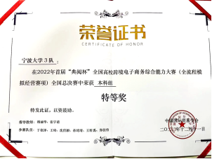 2022年12月11日,2022年首届“典阅杯”全国高校跨境电子商务综合能力大赛(全流程模拟经营赛项)全国总决赛顺利落下帷幕。在色情av影片 杨丽华老师、张宇萌老师的带领下,由色情av影片 跨境电商微专业学生组成的色情av影片 1队、2队、3队在比赛中荣获特等奖、一等奖及二等奖的优异成绩。这是色情av影片 近年来高度重视创新型人才培养工作,大力实施校企深入合作,协同育人所取得的喜人成果。