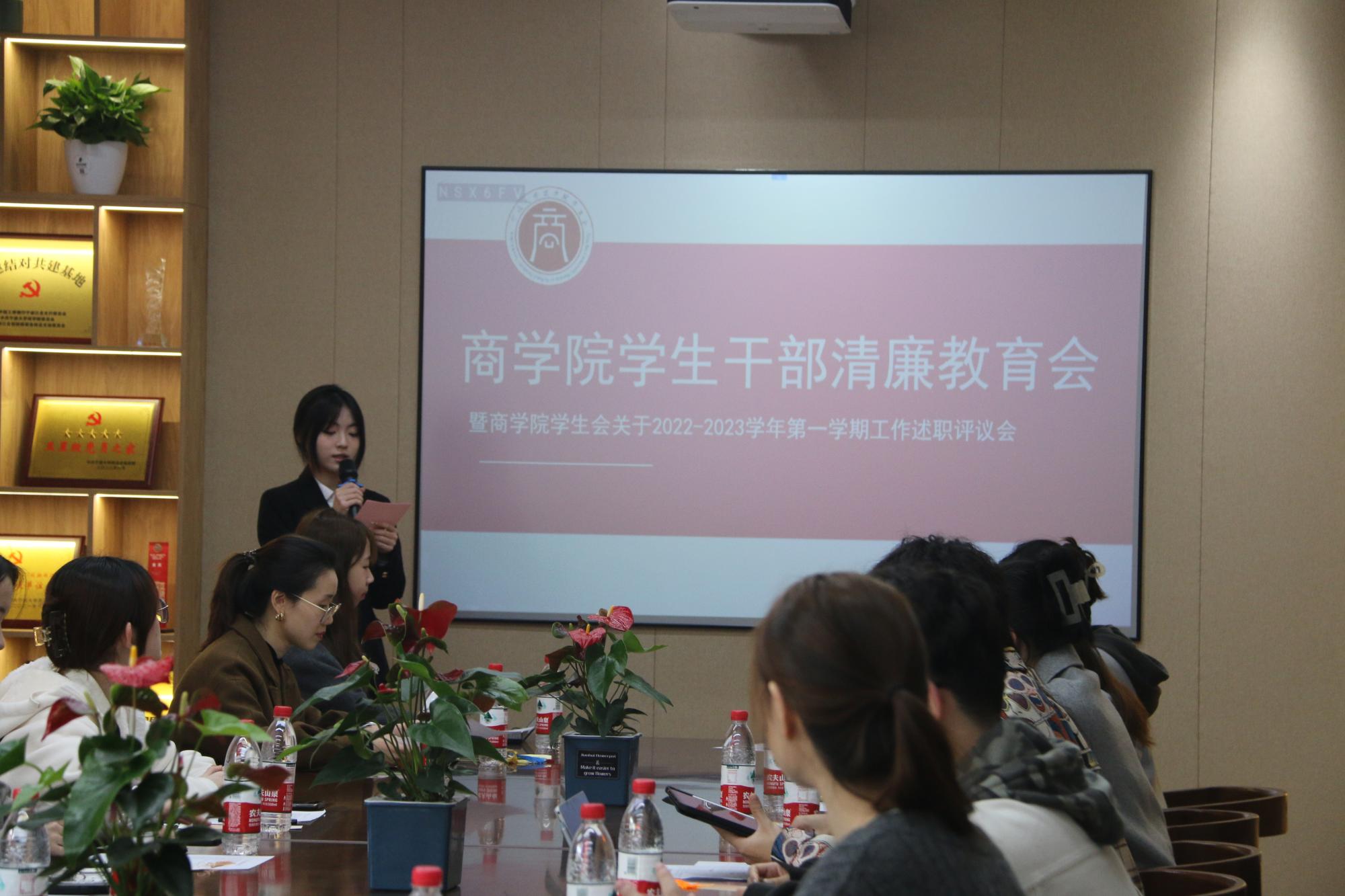 本次会议的召开,旨在深入学习贯彻党的二十大会议精神,响应党的二十大报告中对“加强新时代廉洁文化”的要求,让商院学生干部在成长拨穗期扣好廉洁自律的“第一扣”,在成长黄金期系好廉洁自律的“安全带”,正心明道、怀德自重、修身律己,更好堪担起实现中华民族伟大复兴的时代重任。