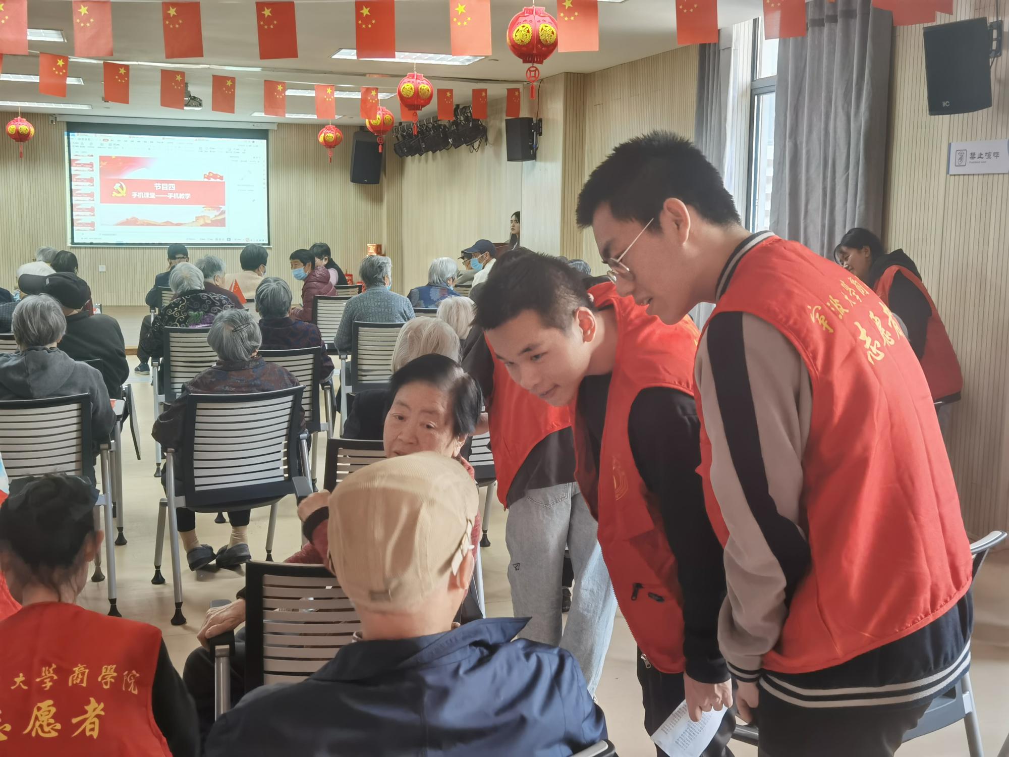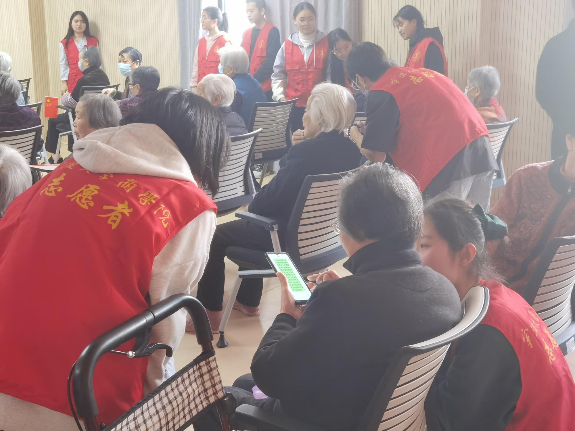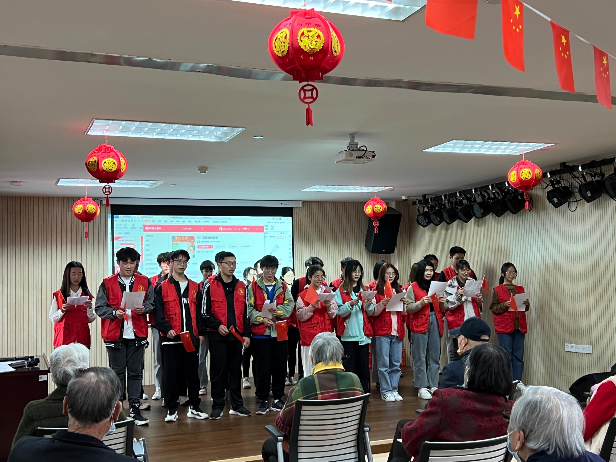 活动伊始,全体同学按照分组有序来到敬老院,由主持人进行团队介绍,并宣布开始。活动期间,全体同学带来《学习雷锋好榜样》合唱。随后,团支部全体成员分别按照三大主题“反诈宣传”、“健康宣传”、“手机教学”进行了精彩的节目表演和知识讲解,展现青年活力,展示青年风采,为老年人带来欢乐。