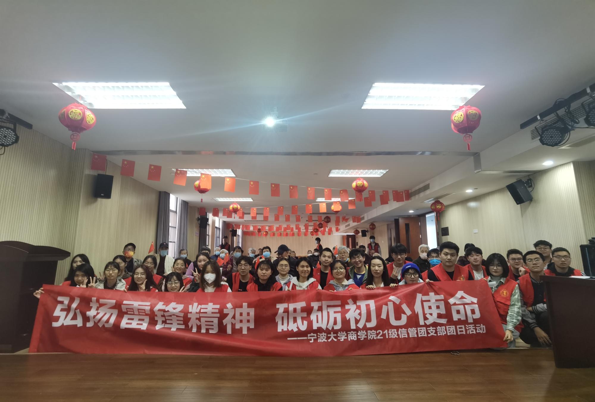 3月15日下午,为践行雷锋精神,弘扬“尊老、爱老、敬老”的中华民族传统美德,色情av影片 2021级信息管理与信息系统班团支部在宁波国家高新区颐养院开展以“弘扬雷锋精神,砥砺初心使命”为主题的团日活动。