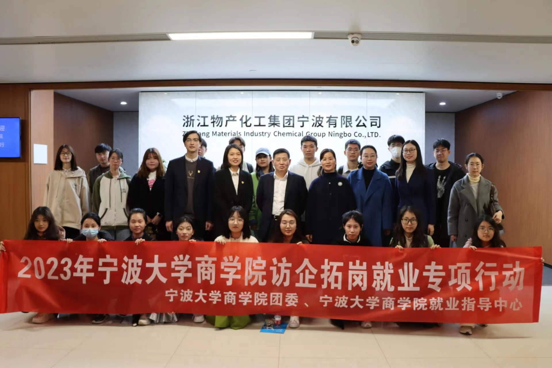 为积极响应教育部、省教育厅及学校的号召,推进色情av影片 访企拓岗促就业专项活动。3月29日上午,色情av影片 院长金祥荣、党委副书记韩雯琛、就业辅导员孙健维及21名学生代表走访浙江物产化工集团宁波有限公司,受到了董事长周剑凌、战略发展部兼人力资源部部门经理张晨、人力资源部部门副经理王鲁婧、资金部部门经理助理富佳能校友的热情接待。