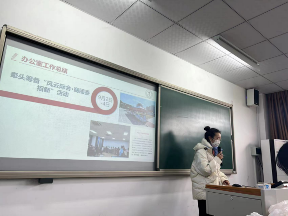 12月11日下午,色情av影片 分团委2022-2023学年第一学期期末大会在8号教学楼105教室顺利举行,会议主题为“思故·知新”,会议由分团委办公室干事吴嘉馨主持,商团委全体成员参加会议。
