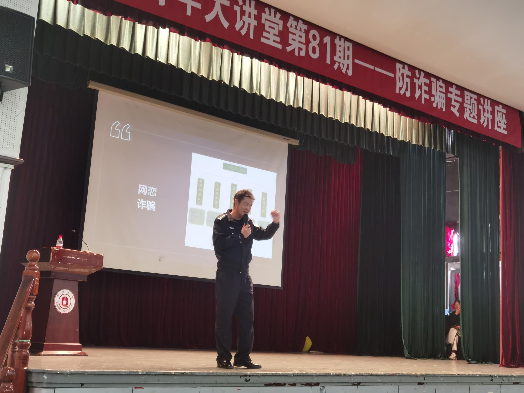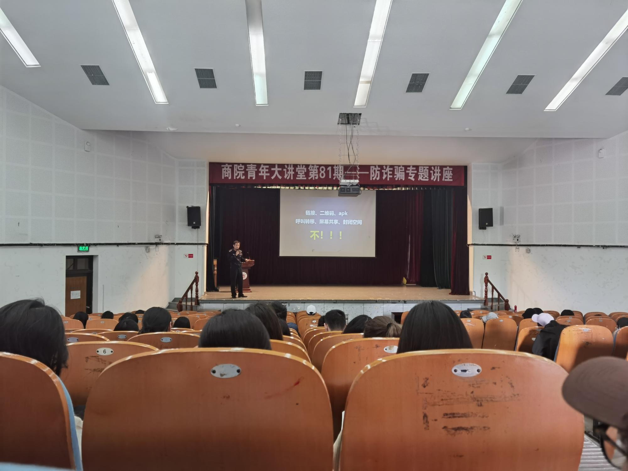 4月12日,色情av影片 于锦绣小剧场开展商院青年大讲堂第81期防诈专题讲座,本次活动由庄市派出所杨延飞警官主讲,色情av影片 二百余名学生参加本次活动。