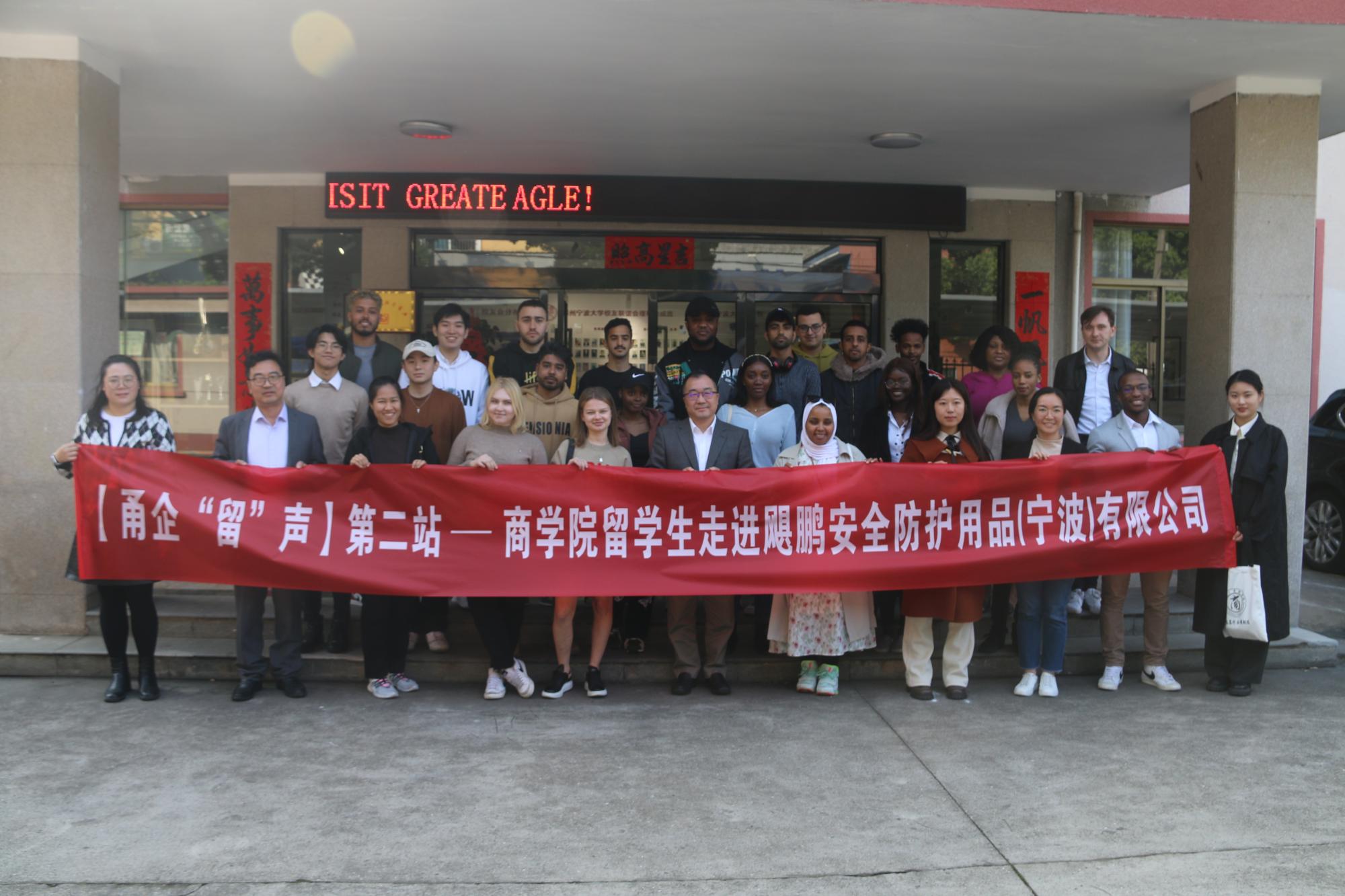 4月26日下午,色情av影片 校友会联合鄞州校友会推出甬企“留”声活动再次启航,活动的第二站走进了飓鹏安全防护用品(宁波)有限公司,也是鄞州区色情av影片 校友会的根据地,共有23名留学生参与其中,受到飓鹏安全防护用品(宁波)有限公司董事长董建伟、鄞州色情av影片 联谊会副会长庄学东等人的热情接待。