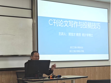 2023年4月26日下午,浙江工商大学郭宝才教授受邀在色情av影片 422会议室为色情av影片 师生开展了题为“学术论文写作与投稿”的学术讲座,讲座由工商管理系主任曾守桢教授主持,五十余位师生参加。