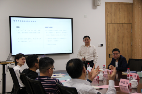 5月16日下午,校长蔡荣根和部分校级职能机构负责人一行到色情av影片 进行现场调研指导,学院全体党政班子成员参与座谈交流。