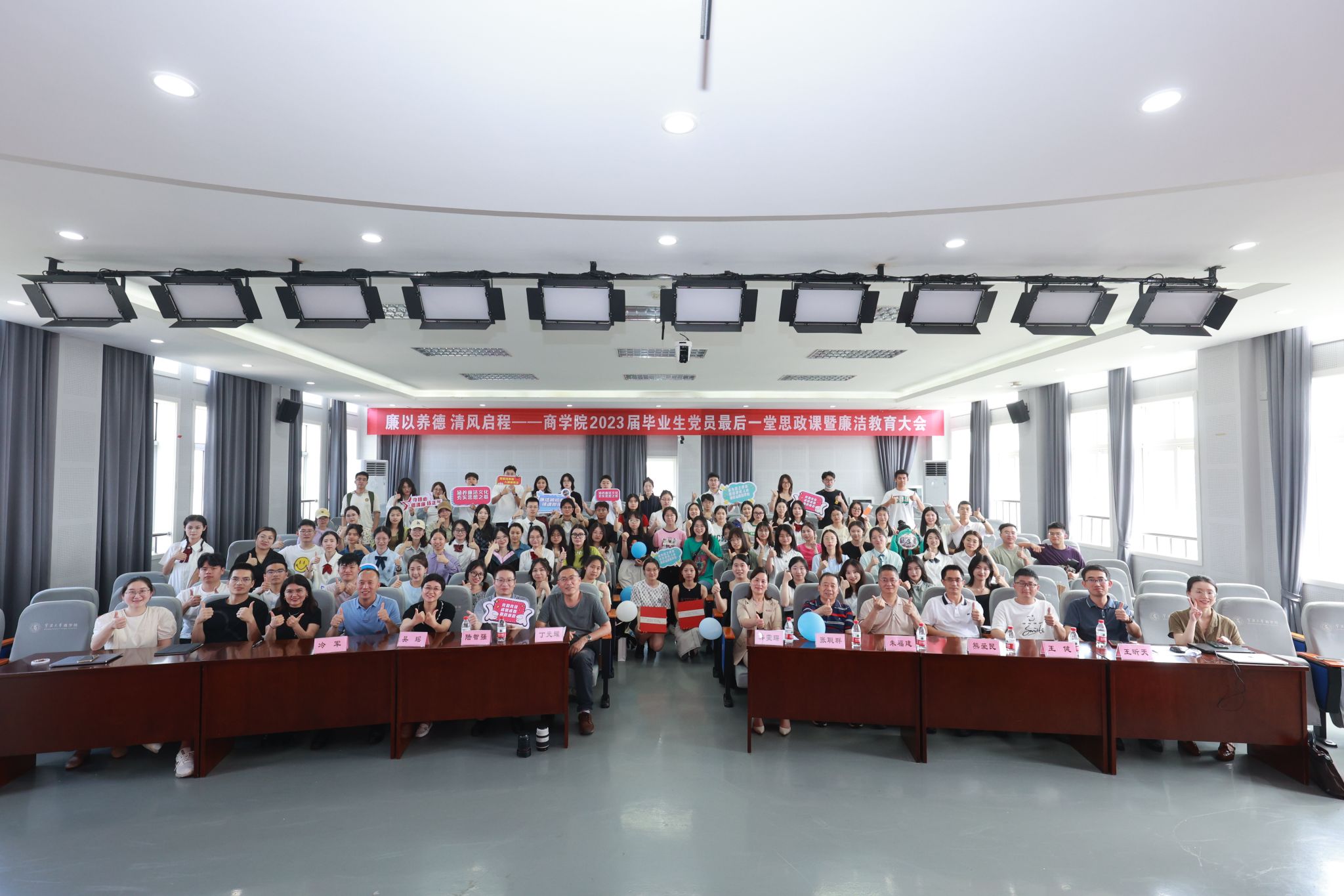 6月21日,色情av影片 结合商科学生就业领域的职业特色和高廉政风险,为2023届毕业生精心策划了一场“寓廉于乐”的最后一堂思政课,让毕业生党员坚定理想信念,带着谆谆嘱托扬帆远航。色情av影片 党委副书记、纪委书记韩雯琛、院纪委委员、毕业班班主任、辅导员和毕业生党员共150人参加了活动。