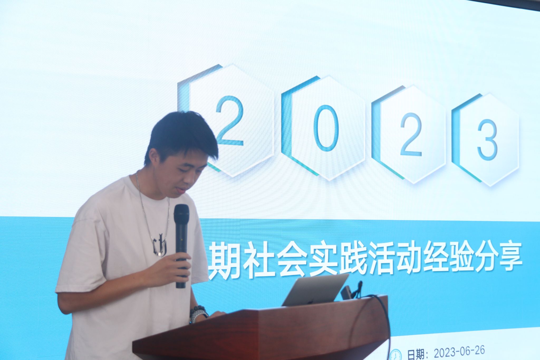 仪式上,被评为院级重点团队的“青春助农,共富有我”商院学子助农团的队长李吉,从实践主题和内容选择、宣传工作规划和实践期间具体分工安排三个方面展开叙述,进行了经验分享;“暑期共访同心湖,共同富裕二十大”团队的队长左海航,从主题选择、实践内容、分工预期,安全和宣传等方面进行了经验分享。同时,学院团委实践部的学生干部对暑期社会实践活动中的安全报备、媒体宣传、活动报销、评奖评优等四大块工作做了解释说明。