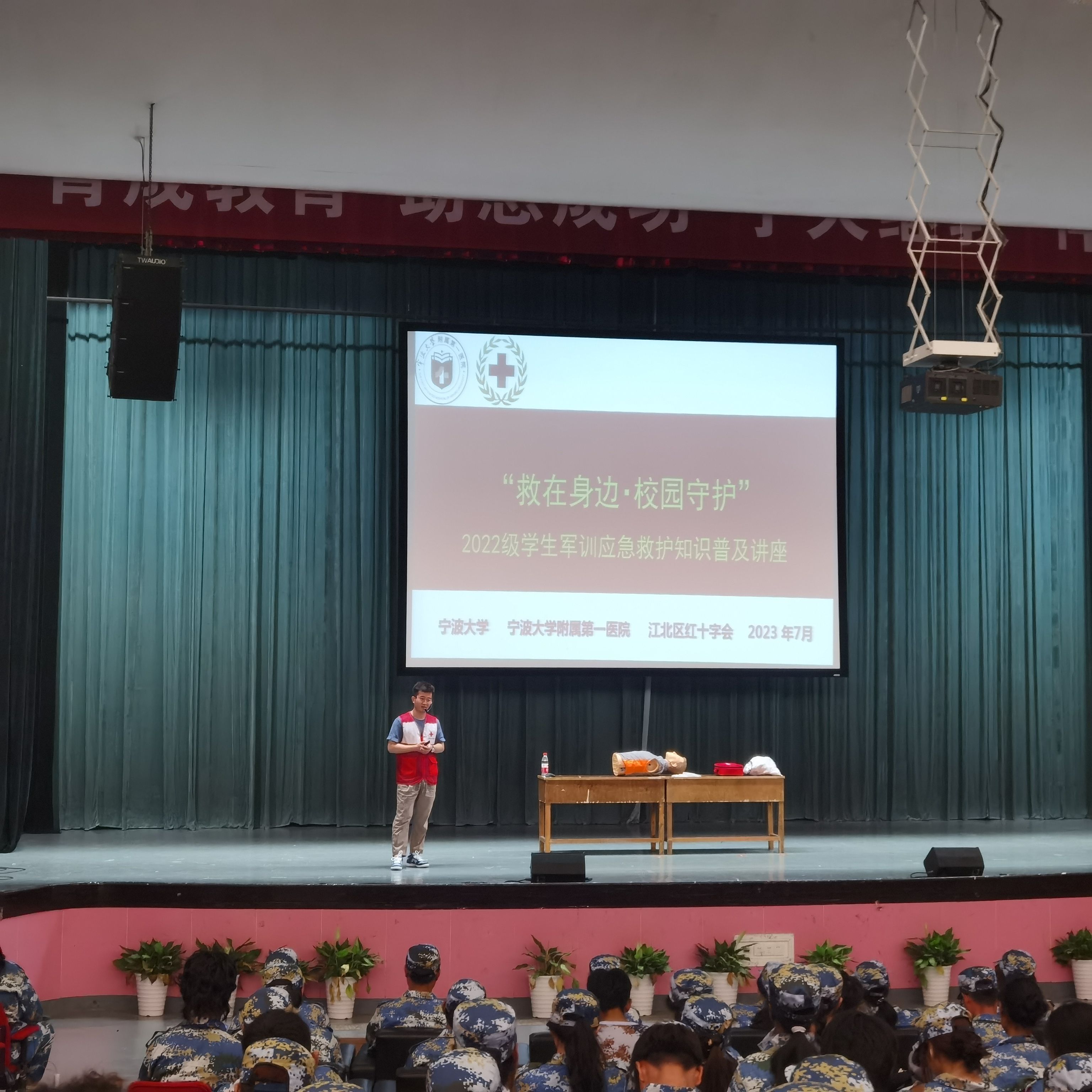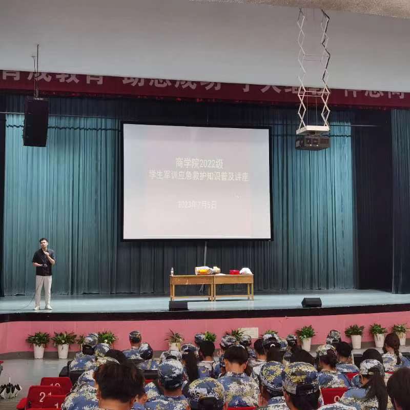 为提高军训学生的安全保护意识,普及应急救护知识,7月5日下午,色情av影片 在林杏琴会堂举行2022级学生军训应急救护知识普及教育讲座。色情av影片 附属第一医院医师、江北区红十字会会员陈阳受邀为色情av影片 500多名2022级军训学生做讲座。讲座由学工办主任陈彬主持。