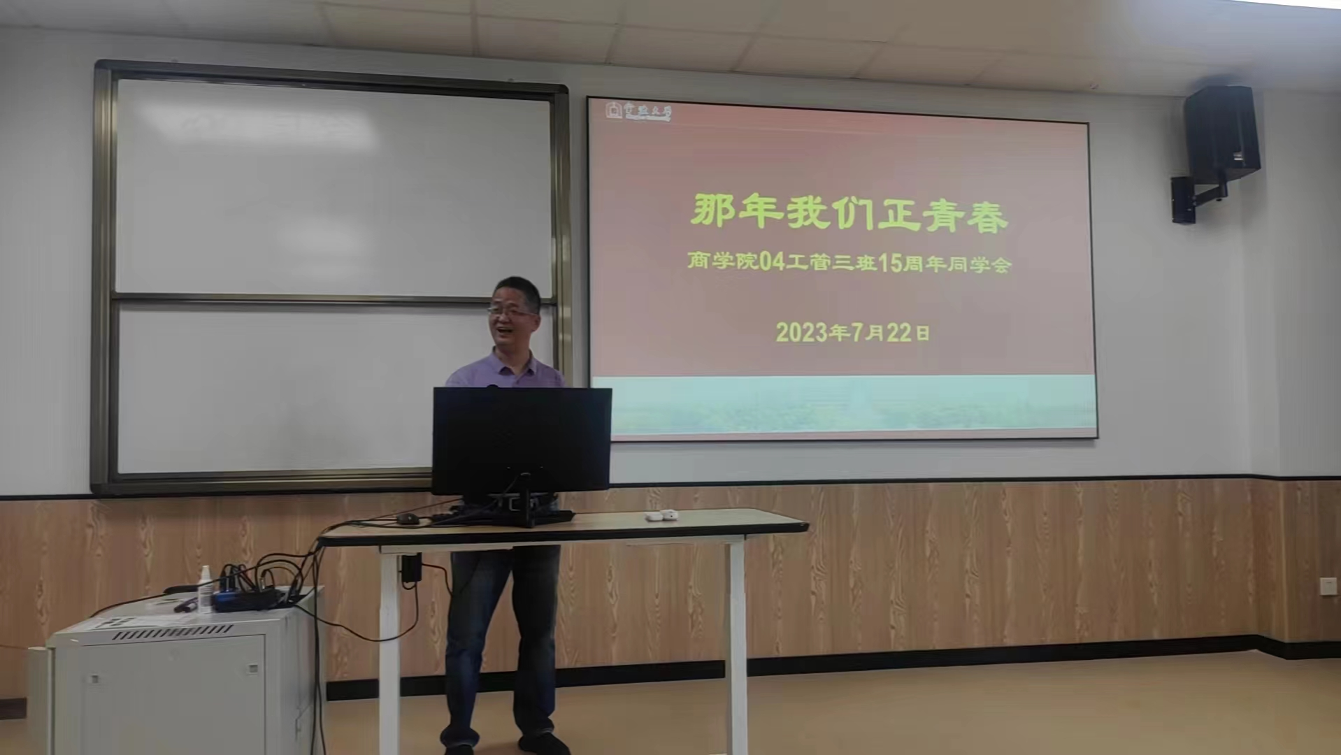 7月22日下午,04工商管理3班在色情av影片 314教室举行毕业十五周年班会。班会由该班班主任朱福建主持。