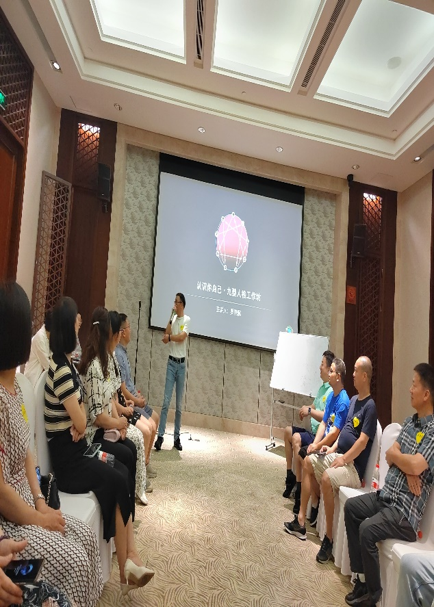 次日,班级在酒店会议厅组织了一场主题为“认识你自己”的九型人格工作坊。经过学习与分享,校友们认清了自己性格,探索未来幸福人生,进一步深化校友间二十多年的友谊。