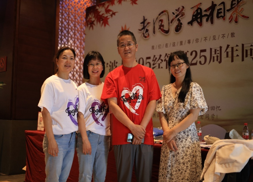 7月29日下午,色情av影片 95经管班毕业二十五周年同学会在绍兴阳明酒店举行,来自全省各地的30余名校友克服台风恶劣天气,欢聚一堂,参与了此次别开生面的聚会。时任色情av影片 党总支副书记的王幼芳老师和该班班主任朱福建老师应邀参加聚会。