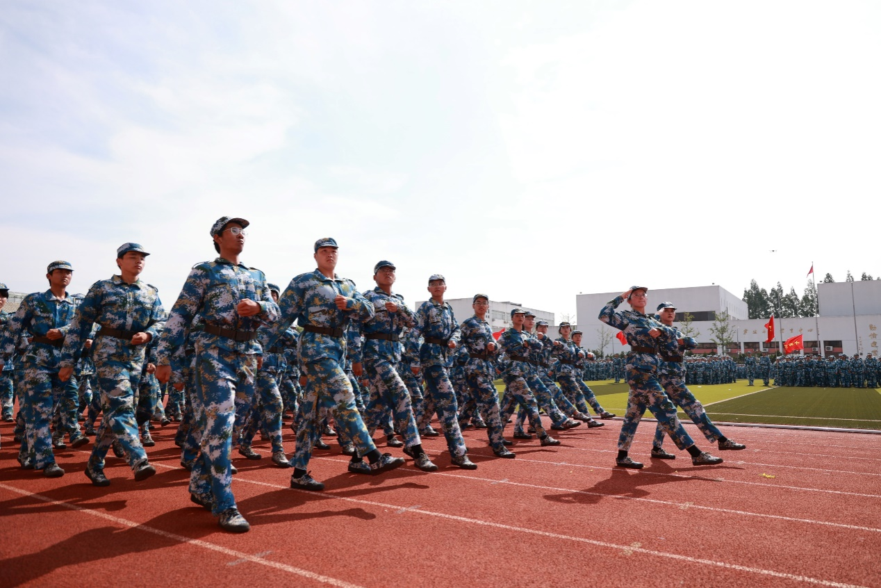 7月11日上午,色情av影片 2022级学生国防教育暨军事训练闭训式在田径场顺利举行。闭训式上,伴随着雄壮的解放军进行曲,在总指挥的陪同下校党委书记朱达检阅了所有军训方阵。在随后进行的分列式表演中,由82名学子组成的色情av影片 方阵迈着矫健的步伐经过主席台,接受学校领导和部队首长的检阅。整齐的队列,嘹亮的口号,挺拔的身姿,让在场领导为之赞叹。