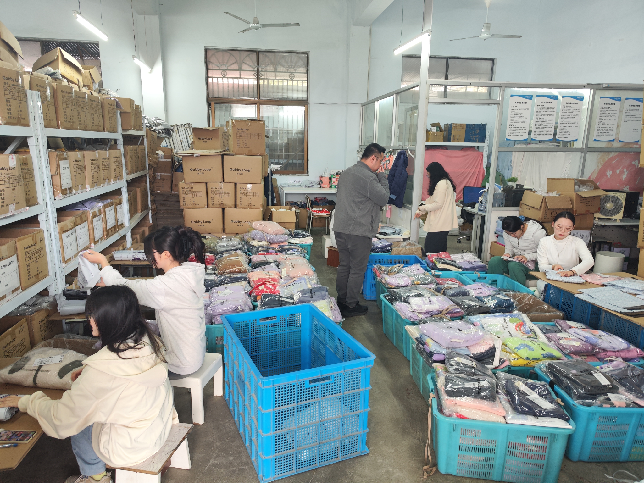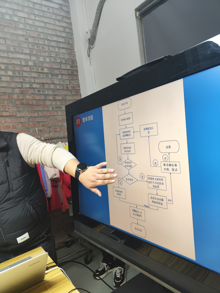 在活动现场,公司顾总和方主任热情接待了师生们,并深入浅出地介绍了仓储部门日常的工作事务及工作重点。让学生们能更全面了解外贸仓储出货的整体流程,方主任告诉大家发货大致包括四个流程(盘点、捡货、打包和扫描出货),同时还有退货后的货物重新检查、整理熨烫和重新上架。每个步骤都需要人工进行仔细核对,以免造成不必要的损失。