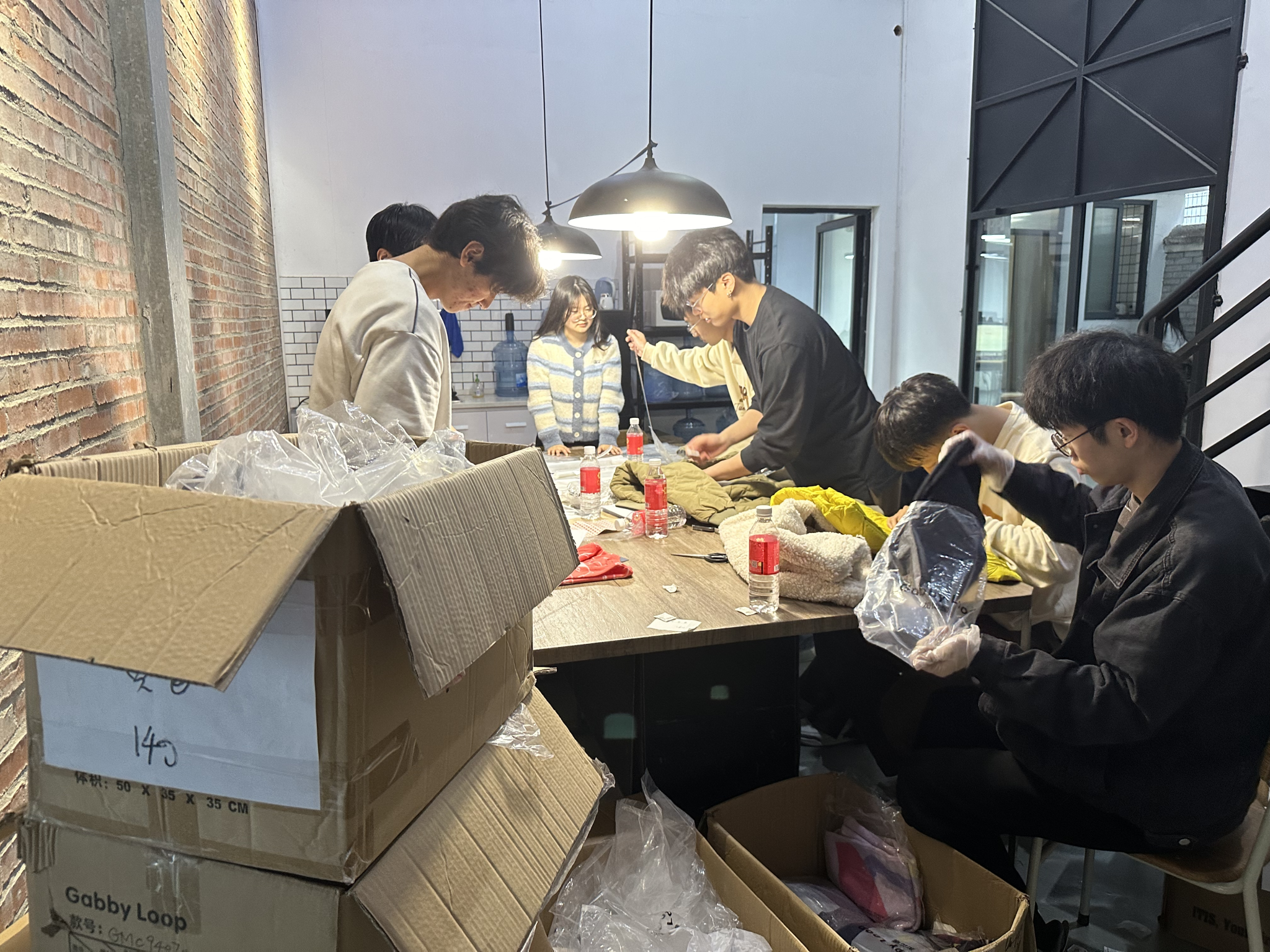 随后,同学们被分为3组,每组6-7人,分别体验了快递打包、退货整理、盘点等不同的工作项目。在现场工作人员的指导下,同学们迅速熟悉了各自的工作内容,很快就进入了工作状态。快递打包中,需要两人一组,一人检查核对订单和货物是否匹配,一人负责打包商品和粘贴订单;退货整理的同学则要对邮寄回来的衣服进行分类,并对货物进行折叠装袋,并重上标签和装袋,以便重新返仓售卖。