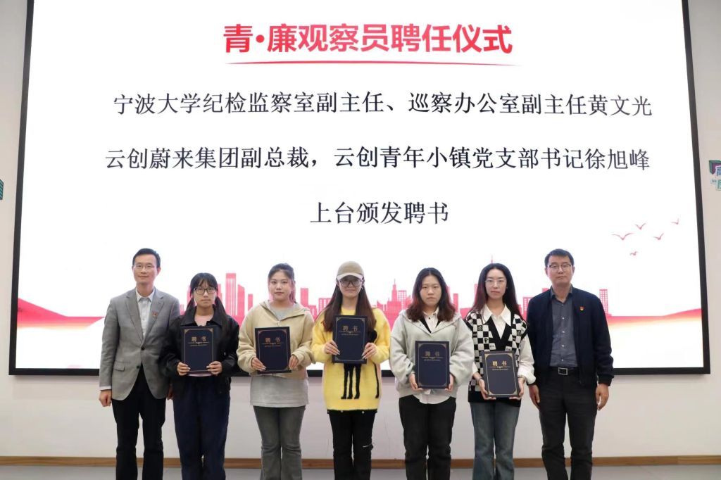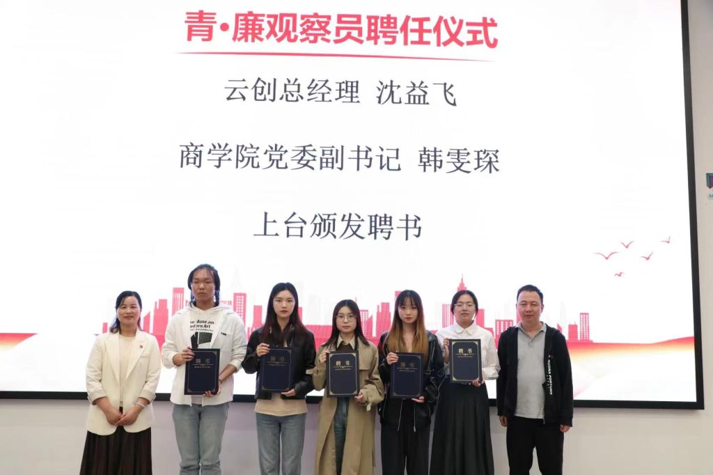 11月8日,“青·廉观察员”聘任仪式在江北云创小镇路演大厅隆重举行。校纪检监察室副主任黄文光、院党委副书记韩雯琛、云创蔚来集团副总裁、云创青年小镇党支部书记徐旭峰、云创总经理沈益飞、云创项目总监周金凤出席并为色情av影片 10位预备党员颁发了“青·廉观察员”聘书。