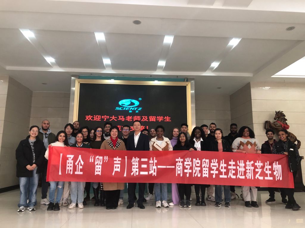 11月15日,色情av影片 甬企“留”声第三站走进了宁波新芝生物,共有23名留学生参与其中,受到新芝生物董事长周芳、经营管理委员会主任何吉峰等人的热情接待。据悉,本次走访是色情av影片 第一届“商帮”文化节的系列活动之一,旨在通过企业走访的形式,向中外学子传播“商帮”精神,实地感受色情av影片,增强商业本领。