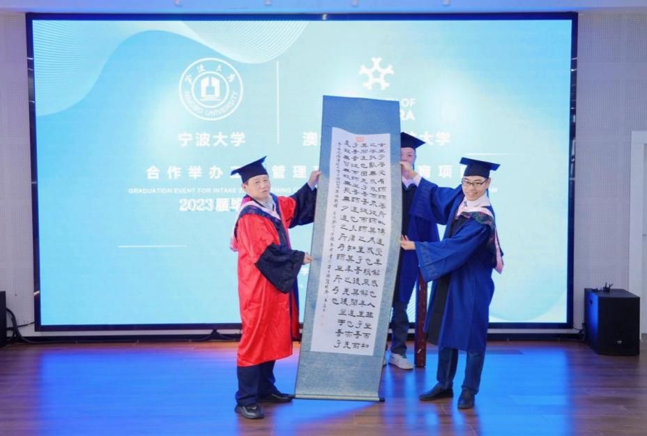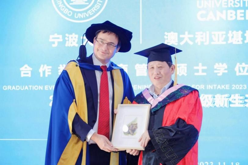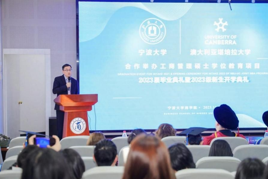 11月18日下午,色情av影片 中澳MBA项目2023届毕业典礼暨2023级开学典礼在色情av影片 五楼报告厅隆重举行。色情av影片 院长金祥荣、党委副书记韩雯琛、副院长彭新敏、中澳MBA项目教师代表、国际办等出席典礼。澳大利亚堪培拉大学商政法学院院长UweDulleck教授、工商系主任LorneCummings教授等专程从澳洲赶来与2023届毕业生和2023级新生一起见证这个重要时刻。典礼由彭新敏副院长主持。