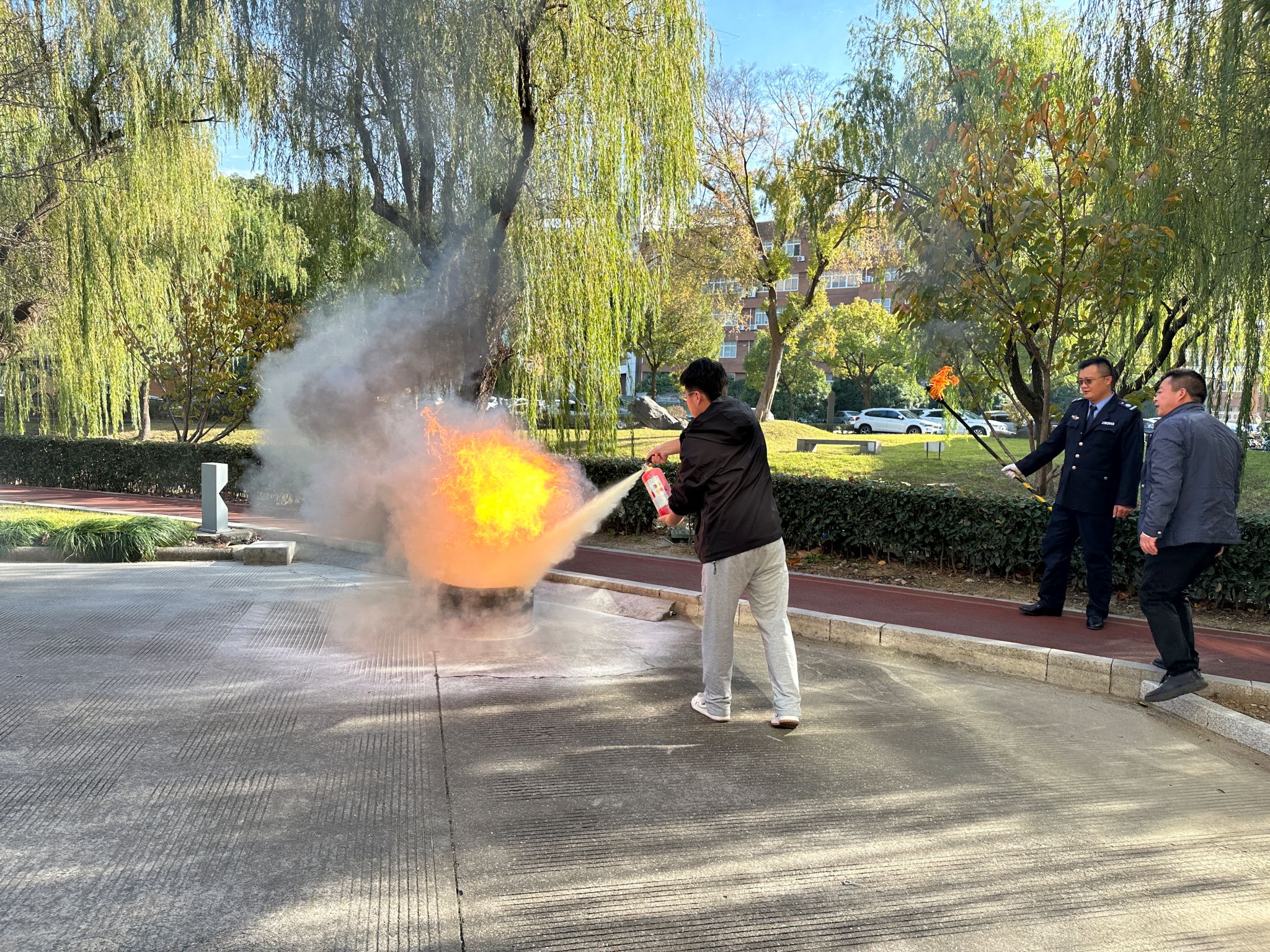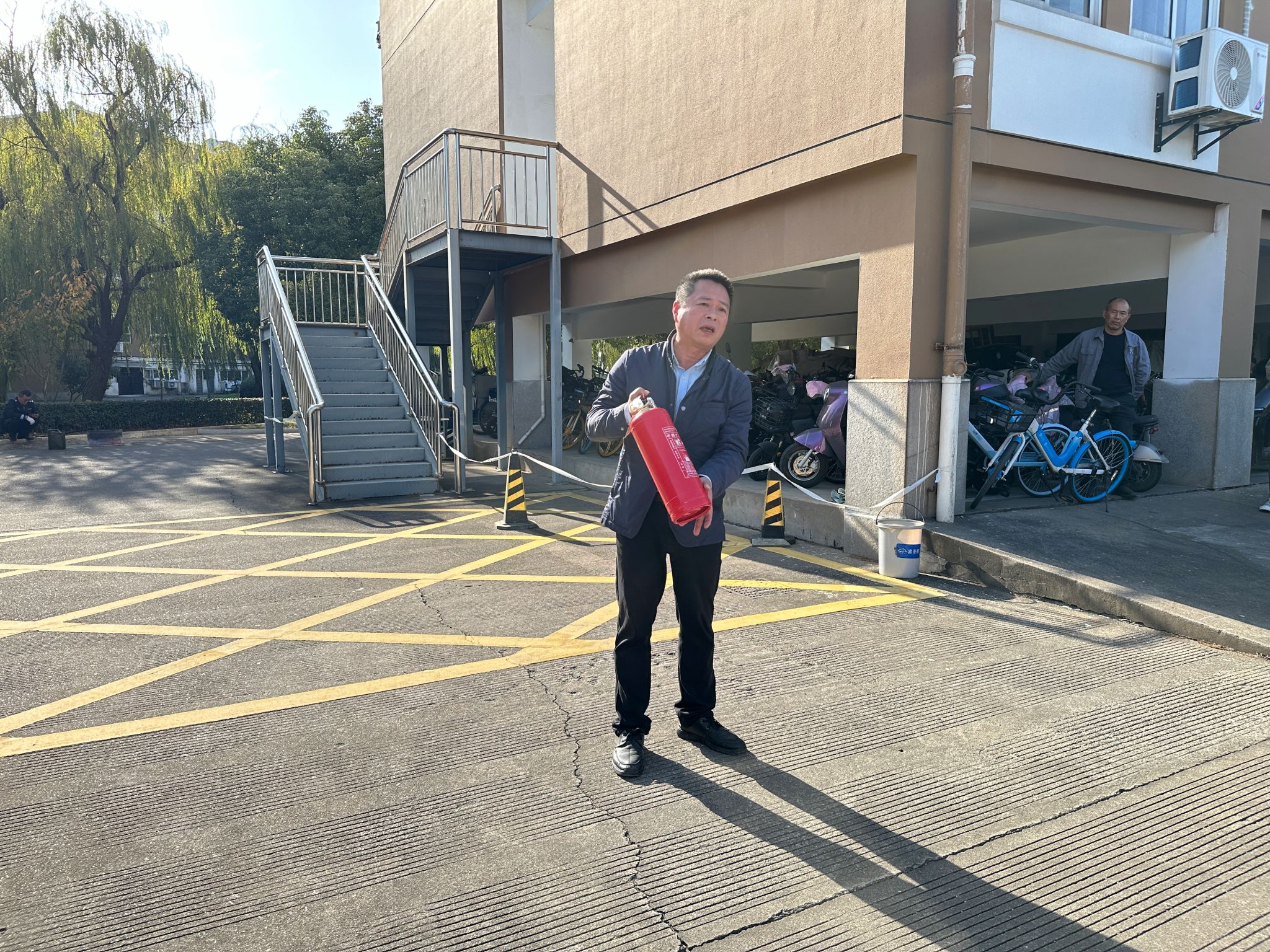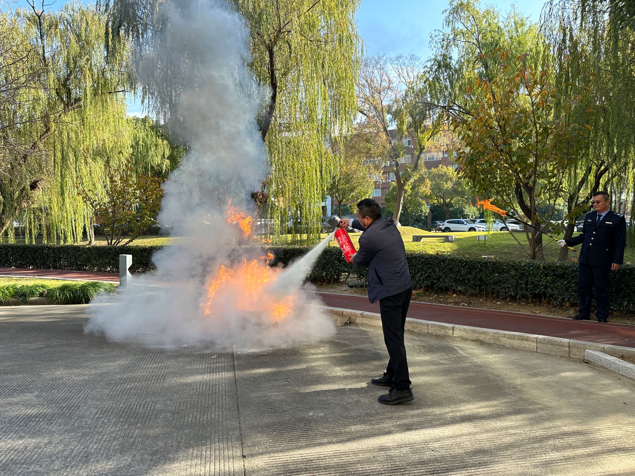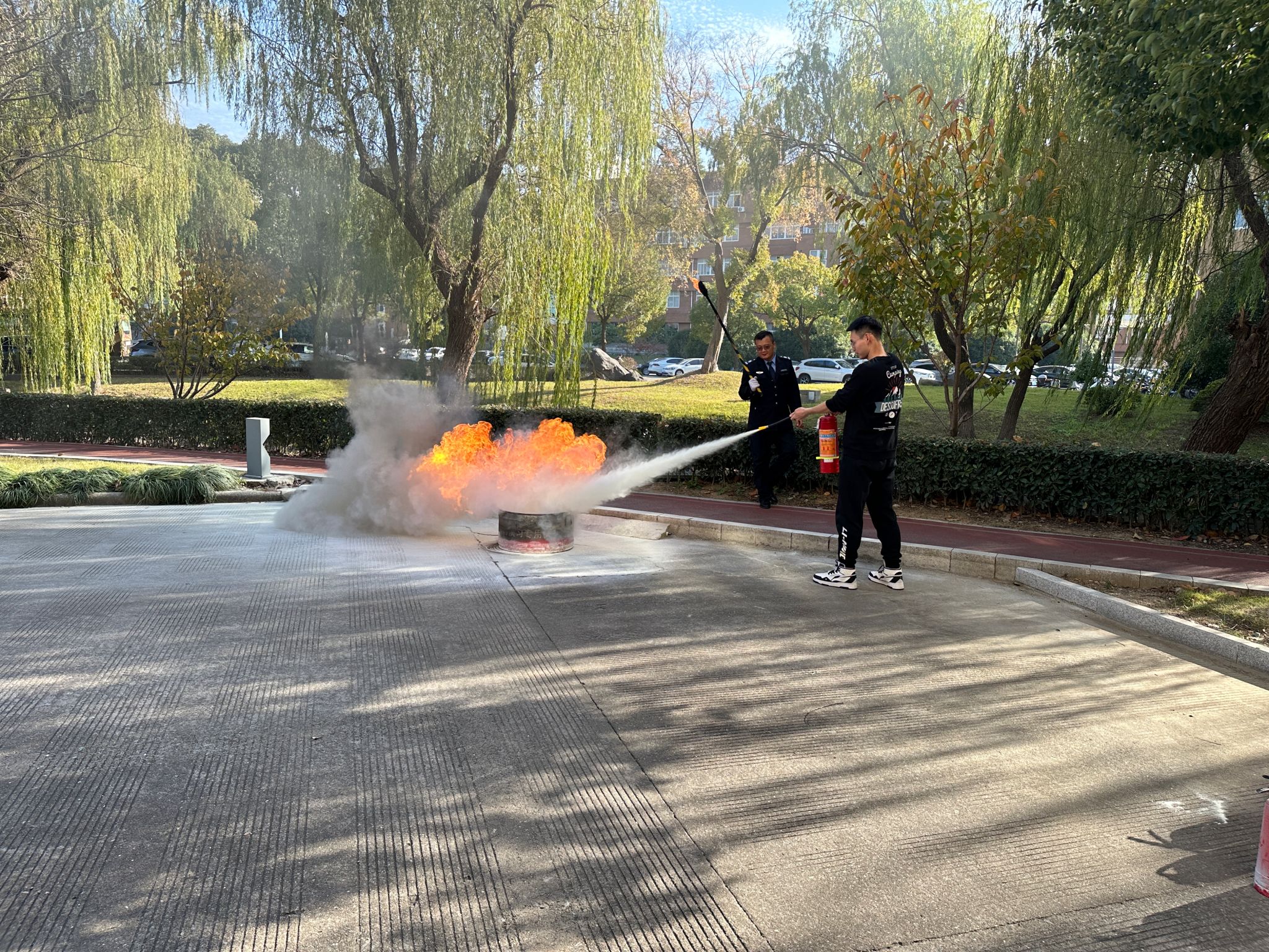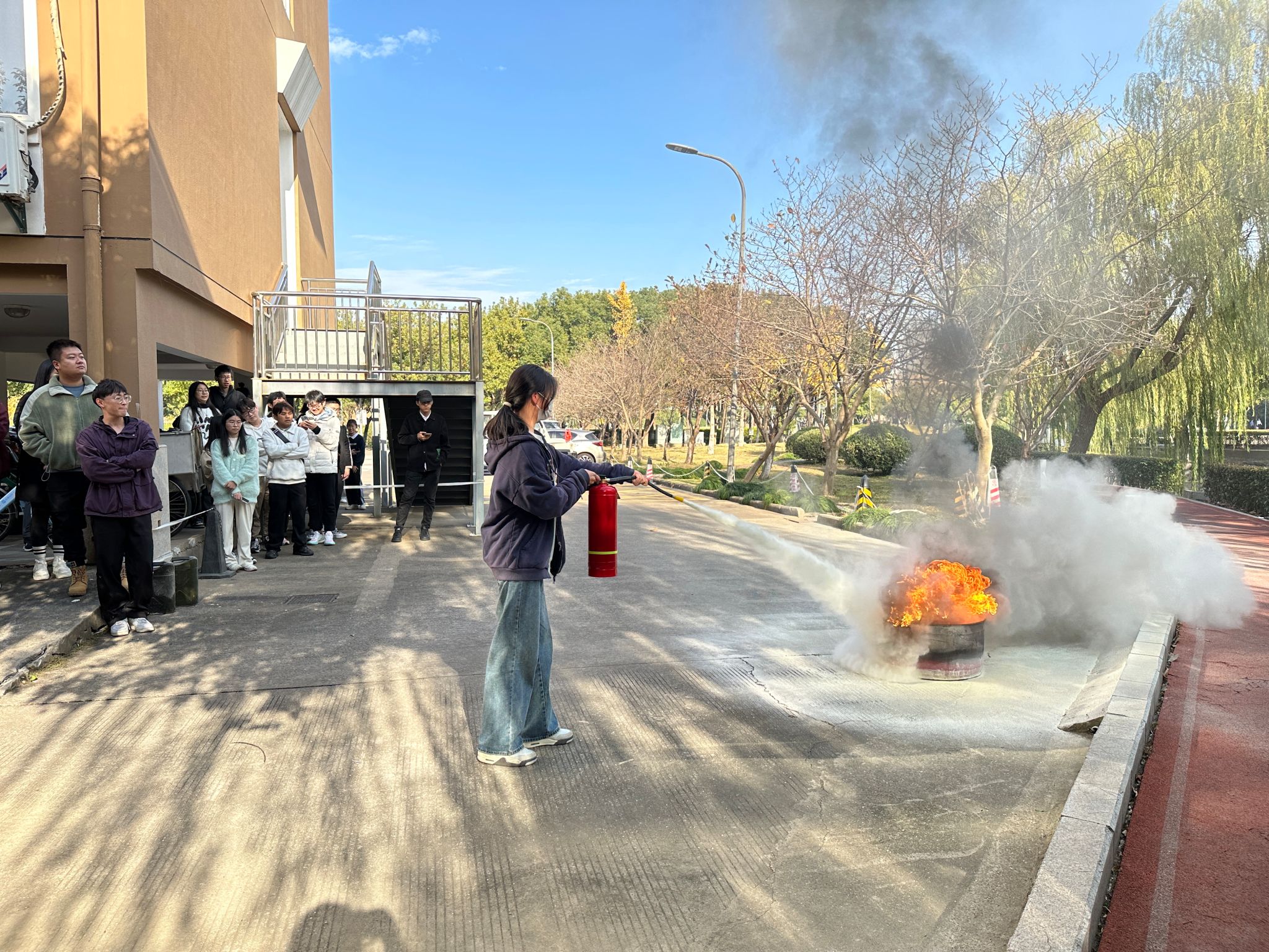 随后,同学们逐一学习了灭火器的使用方法。郑永辉老师指导他们将灭火器提起;同时使用另一只手拉出保险栓并握住喷嘴,然后将喷嘴对准火焰根部进行扫射,将粉末喷洒在整个燃烧区域。通过实践操作,参与活动的同学们能够更好地将理论知识与实际操作相结合,有效提升了他们对初期火灾处理的整体能力。本次演练的同学们都表示受益匪浅,并表示到将把自己所学的消防知识传授给班级同学。