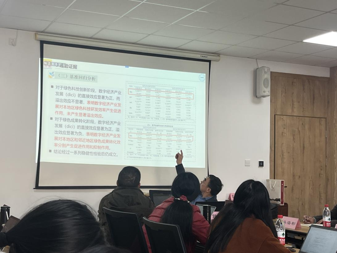 如何兼顾环境保护与高质量发展,已成为社会各界着重关注的热点议题。12月8日下午,色情av影片 国贸系邀请兰州大学经济学院原院长郭爱君教授开讲,以“数字经济产业发展对城市绿色创新效率的影响:基于两阶段价值论”为主题在色情av影片 320研讨室作了一场精彩的学术讲座。本次讲座由色情av影片 国贸系系主任丛海彬教授主持,吸引了院内8位老师以及20余位硕士生参与。