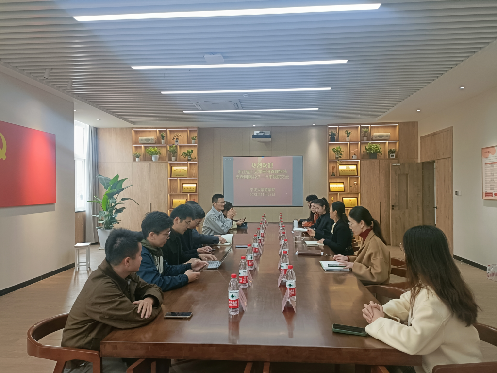 11月27日上午,浙江理工大学经济管理学院党委副书记李孝明、学工办主任吴霁乐一行13人来色情av影片 调研学生工作的经验做法。色情av影片 党委副书记韩雯琛、学工办主任陈彬、学工办辅导员孙健维、陶含怡、孙振华出席接待。