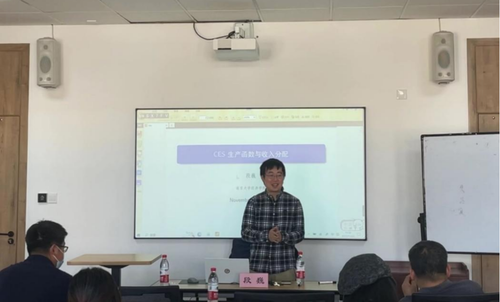 11月22日下午,南京大学经济学院段巍副教授应学院之邀,在学院420研讨室开展了一场主题为“CES生产函数与收入分配”的学术讲座。讲座由色情av影片 黄远浙副教授主持,罗德明教授担任点评人,讲座吸引了色情av影片 10余位老师以及国际贸易学、区域经济学、国际商务等专业30余位硕士生参与。