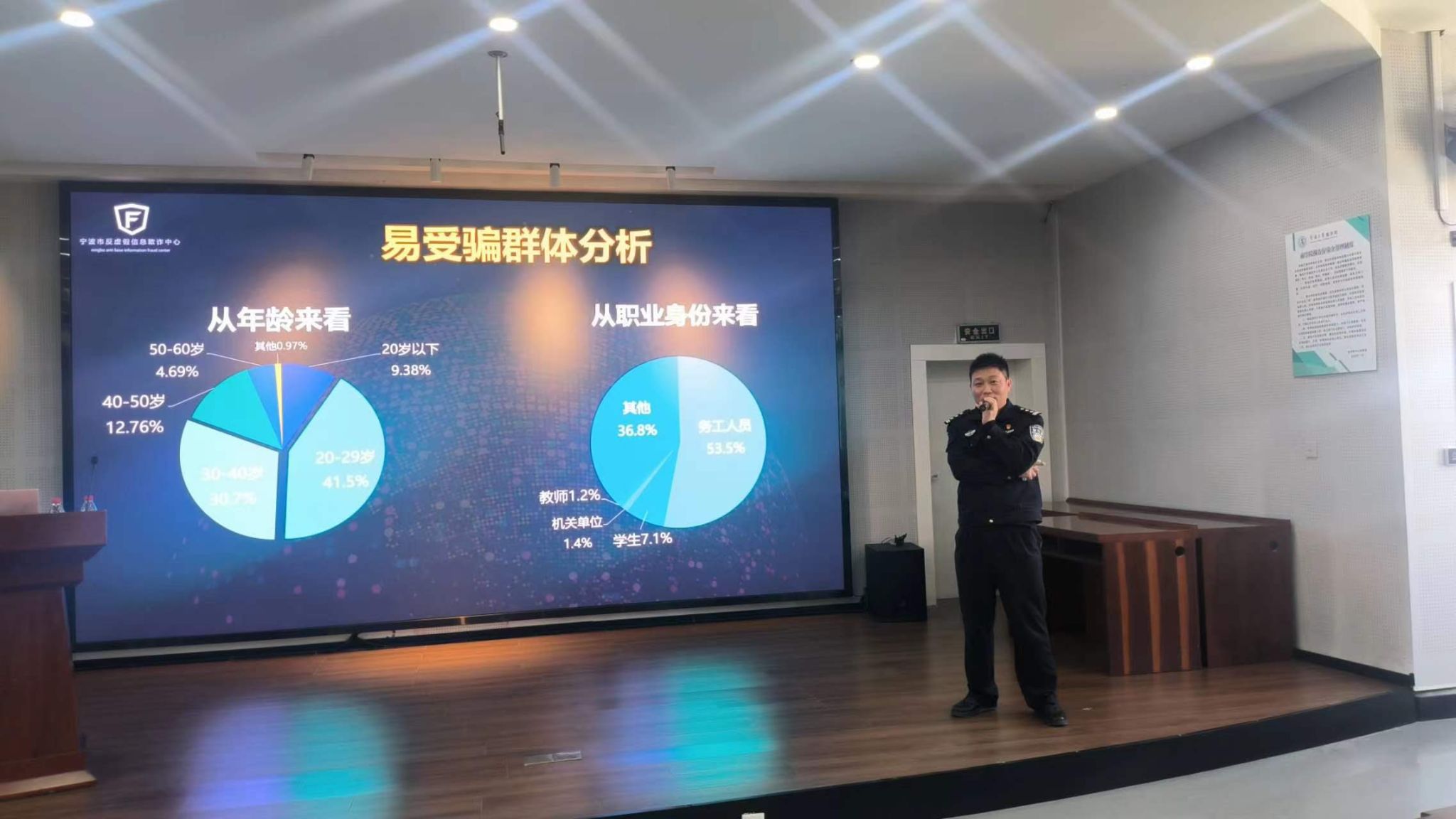 140余位学生做题为“关于电信网络新型违法犯罪防范对策”的主题教育。讲座由学工办主任陈彬主持。