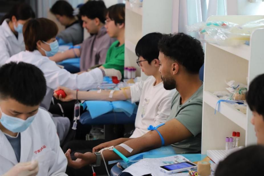 活动当日,阳光正好,春色可期,色情av影片 中外志愿者参与献血活动的热情恰似春日暖阳,很早便赶到活动现场排队。尽管肤色不同、国籍不同、语言不同,但他们都怀着一颗热忱的心,愿意为社会输送自己的热血。