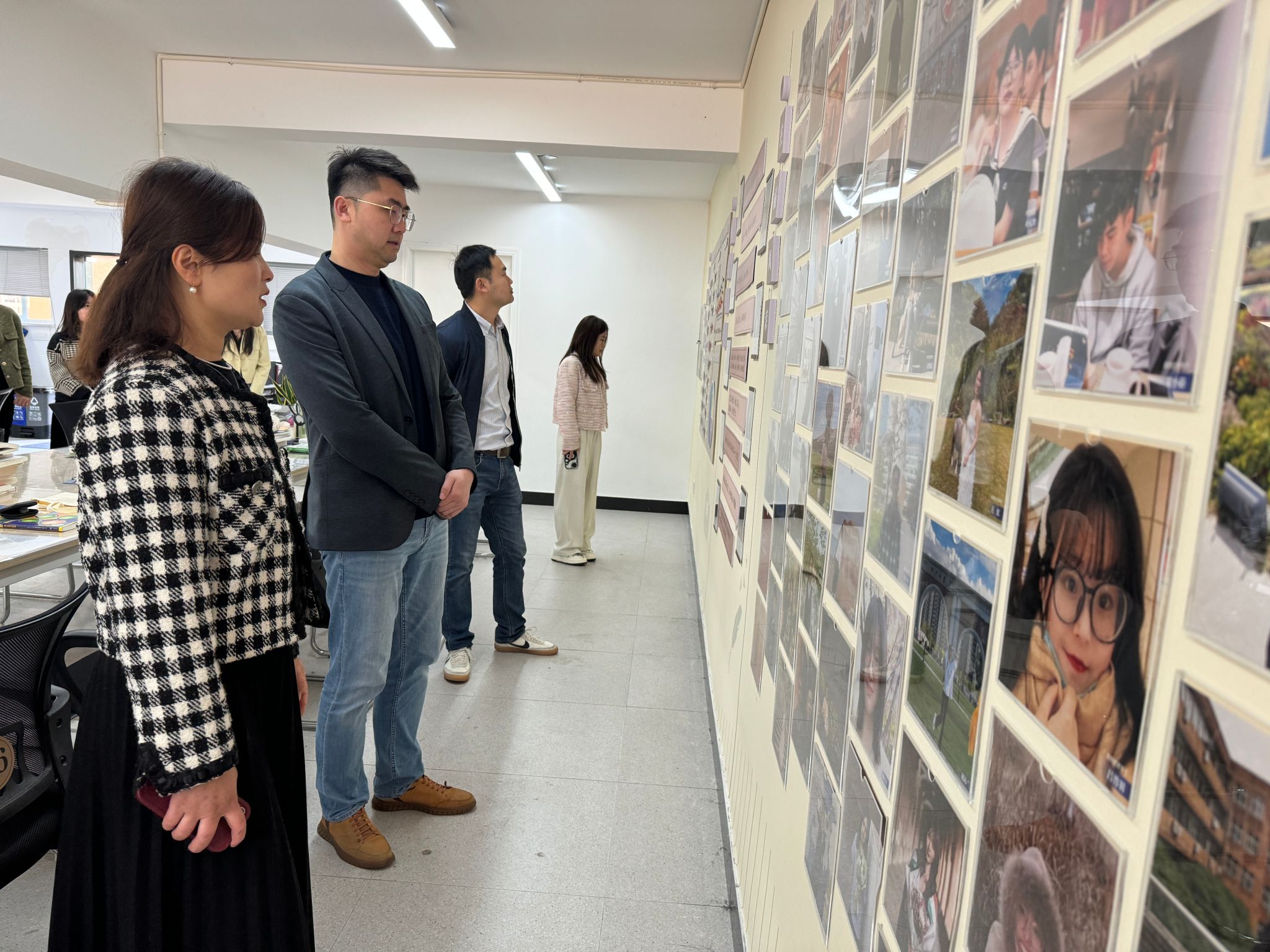 在韩雯琛的带领下,傅琪一行人参观色情av影片 “清风长廊”、共“商”青春心理工作室、共“商”未来生涯工作室、学生自习室。