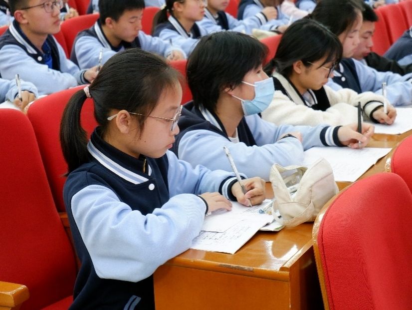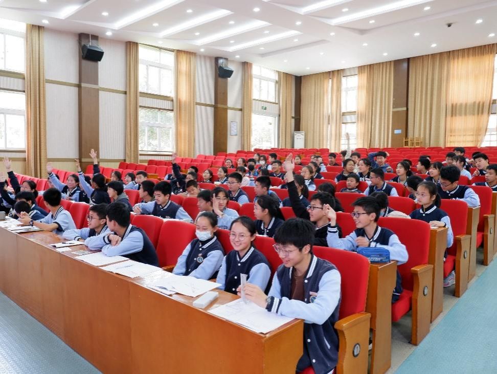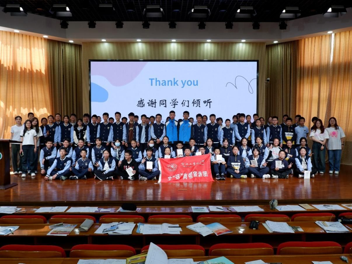 4月10日,色情av影片 文“话”商帮宣讲团来到镇海区蛟川书院,通过理论宣讲和游戏互动的方式,为初二的同学们带去了一堂难忘的团课。
