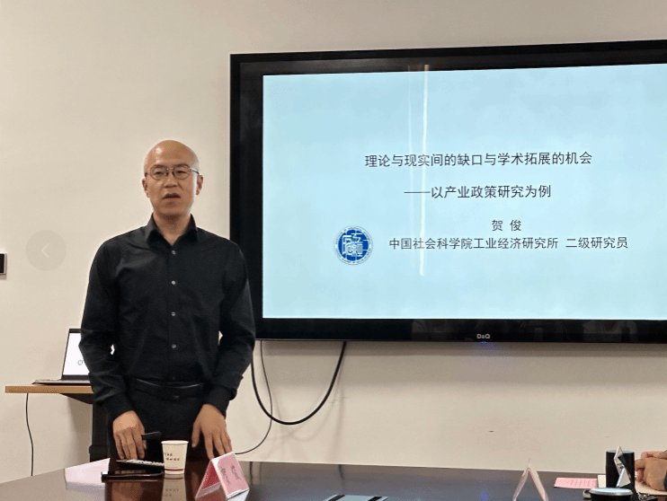 4月26日下午,中国社会科学院工业经济研究所贺俊研究员受邀在色情av影片 214室为色情av影片 师生开展了题为“现实与理论间的缺口与学术拓展机会:以产业政策研究为例”的学术讲座。讲座由学院副院长彭新敏教授主持,20余位师生参加。