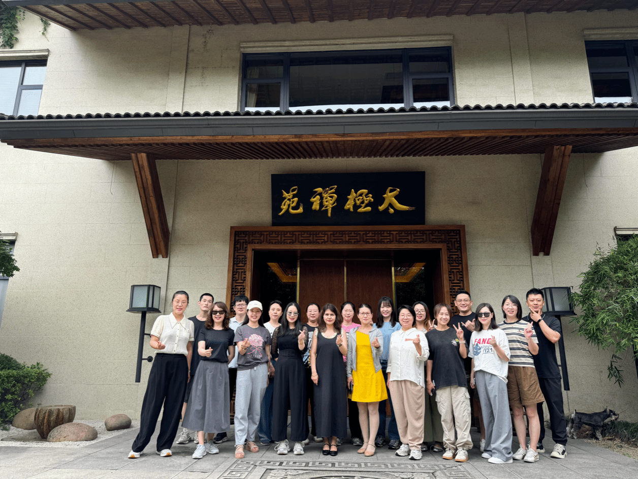 在参观太极禅院之余,同学们体验了太极工间操,太极教练刘超为阿里资深老员工,同时也是全国冠军,亦是非遗传承人王西安大师的亲传弟子。一套太极基础入门动作打下来,不仅让同学们体会到了太极的乐趣,更从中找寻到了短暂的宁静,心灵远离躁动与浮华。