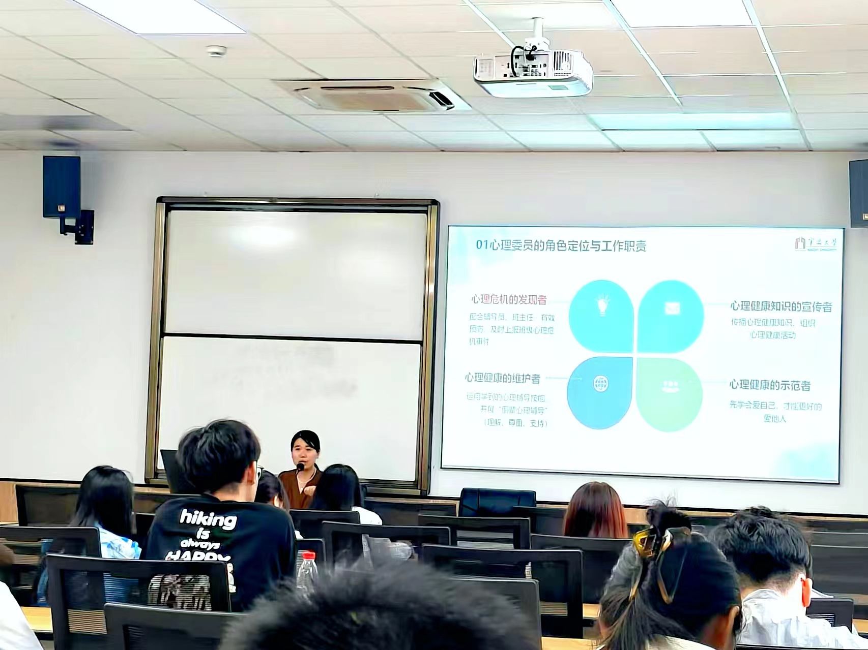 为了关怀同学们的心理健康,使各班心理委员更好地履行职责,减少同学们的学习与生活中的心理压力,9月25日,在色情av影片 506教室开展了2024年新学期全体心理委员培训会。本次培训由学院负责心理专项工作的章舒怡老师作为主讲人,本硕各年级六十余名心理委员参加了本次培训。