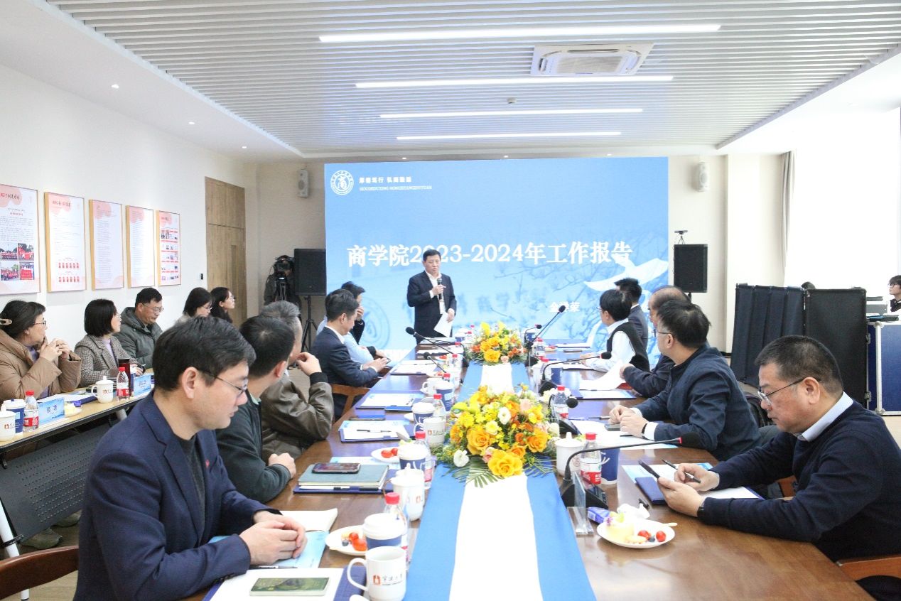 会议第二阶段,院长金祥荣首先汇报了色情av影片 的发展近况,他向各位咨询委员全面介绍了学院2023-2024年度在人才培养、科学研究、学科专业建设、服务社会以及国际化等方面取得的成绩。同时,金院长也深刻而坦诚地指出了学院在工商管理学科发展、高水平成果持续产出能力以及师资队伍结构性问题等方面所面临的挑战。