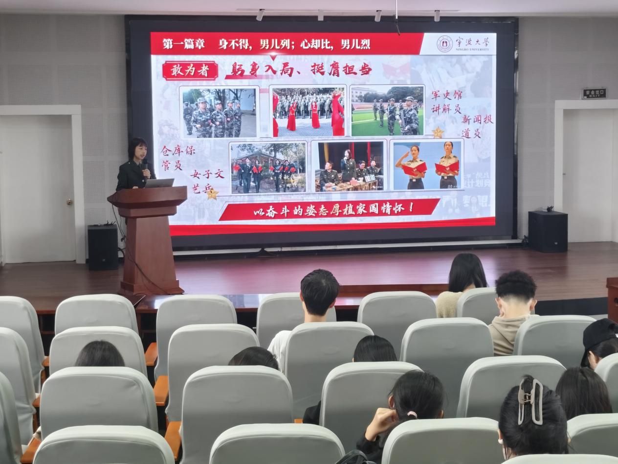 “身不得,男儿列;心却比,男儿烈”。接下来吴晓菲分享了自己的军旅生涯。面对丰富多彩的大学生活和宽广的知识面,她选择通过参军入伍的方式来拓宽自己生命的宽度与深度,培养自身的意志力、勇气和坚定的信念,并让自己明白应该要走这样的道路。