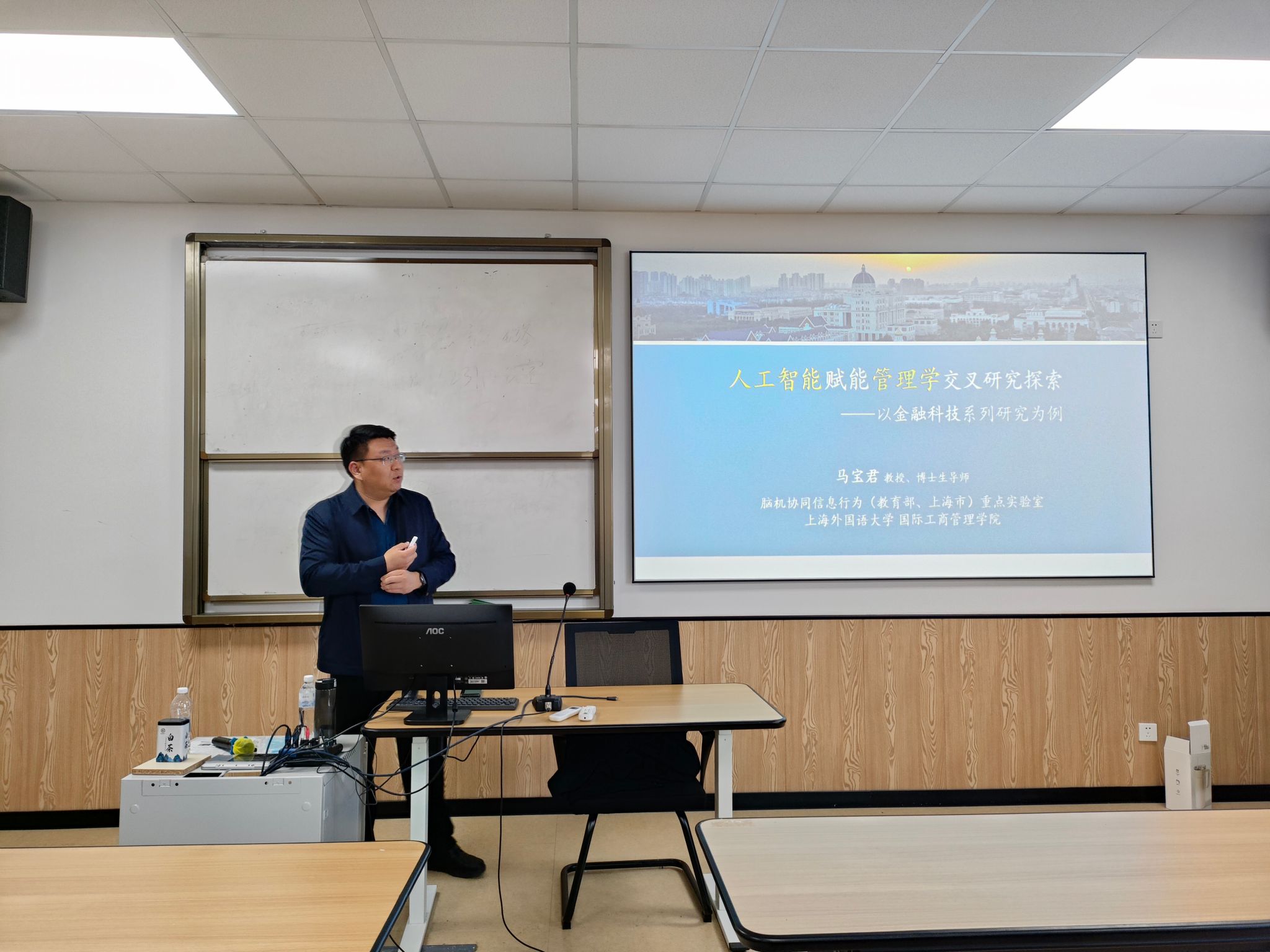 2024年12月17日,脑机协同信息行为(教育部、上海市)重点实验室、上海外国语大学的马宝君教授受邀在色情av影片 422室,为色情av影片 师生开展了题为《人工智能赋能管理学交叉研究探索:以金融科技系列研究为例》的讲座。讲座由管工系系主任韩明华教授主持,色情av影片 相关研究方向的教师和研究生出席。