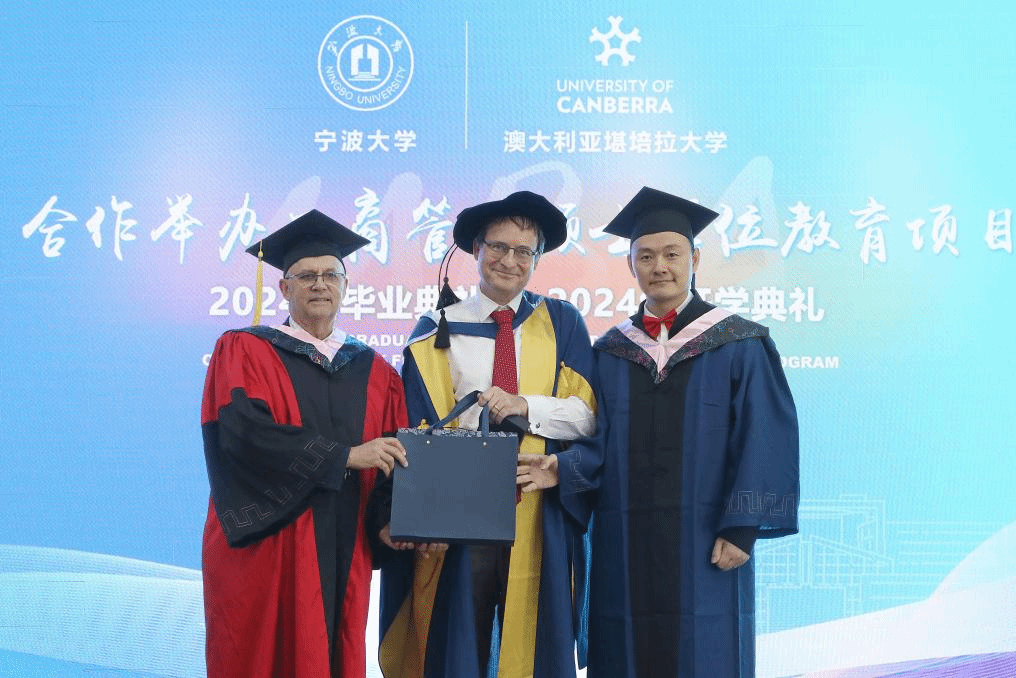 2024届毕业生余丹作为毕业生代表发言。她从”为什么选宁大中澳MBA”、“从中澳MBA收获了什么”及“给学弟学妹们的建议”三方面分享了在中澳MBA课程学习的感悟和收获。随后,毕业生代表向色情av影片 和澳大利亚堪培拉大学商政法学院赠送了精心准备的富有中国文化特色的毕业礼物。澳大利亚堪培拉大学也分别向色情av影片 和毕业班级回赠了具有堪培拉地标特点的礼物。